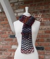 The Exposed Brick Scarf features a neat geometric pattern that looks like little bricks alternating with open spaces. It’s a basic rectangle and a simple stitch pattern that repeats through the entire rectangle.Copyright