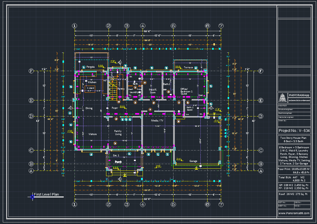 V-634| Duplex House Plans – 6 Bedroom Villa with Concrete Roof and Block Walls