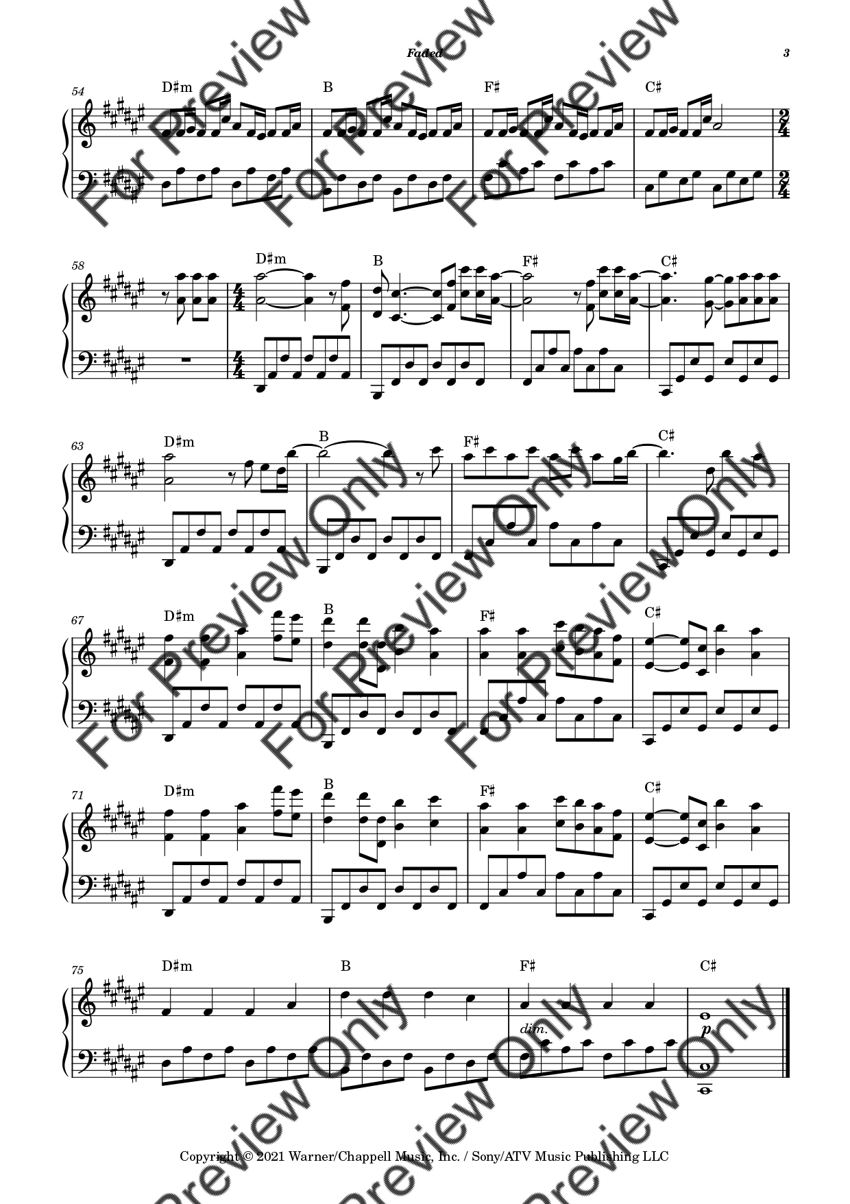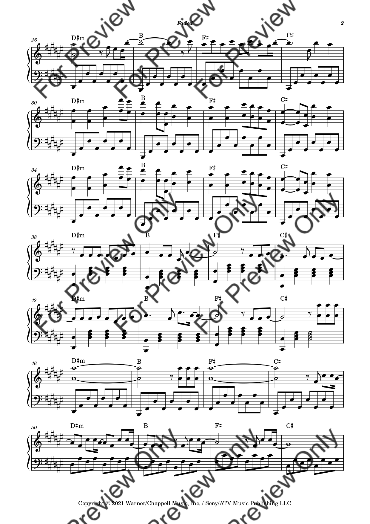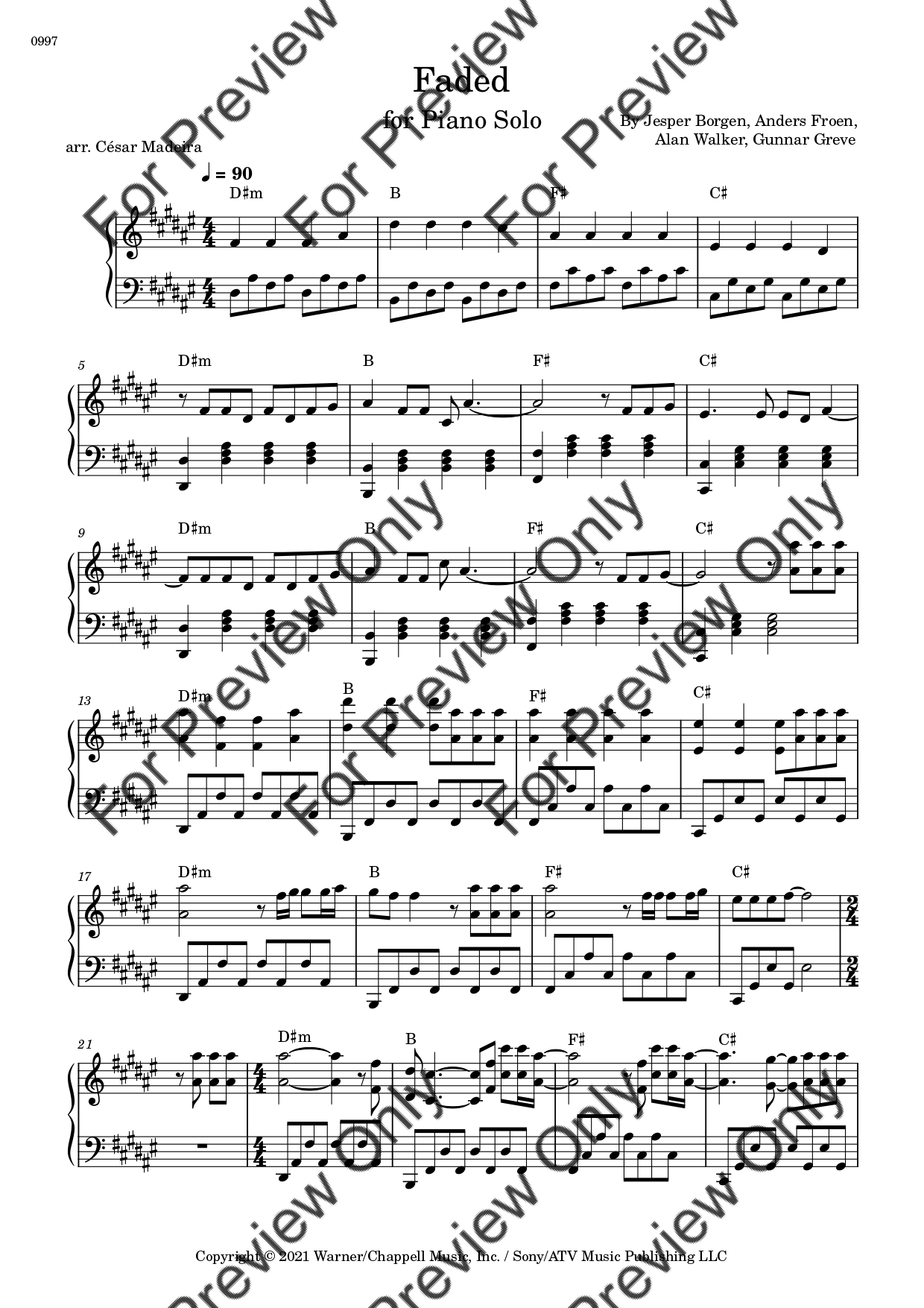 Faded by Alan Walker. Arrangement for Piano Solo (Original Key). With Full Score. Have fun!