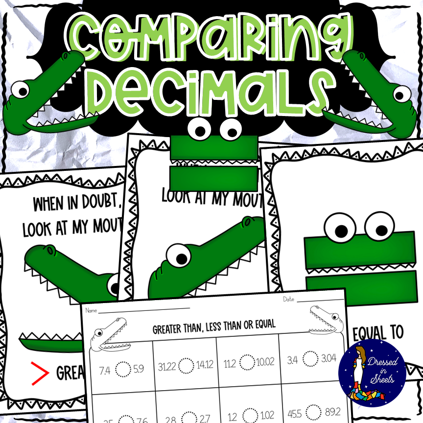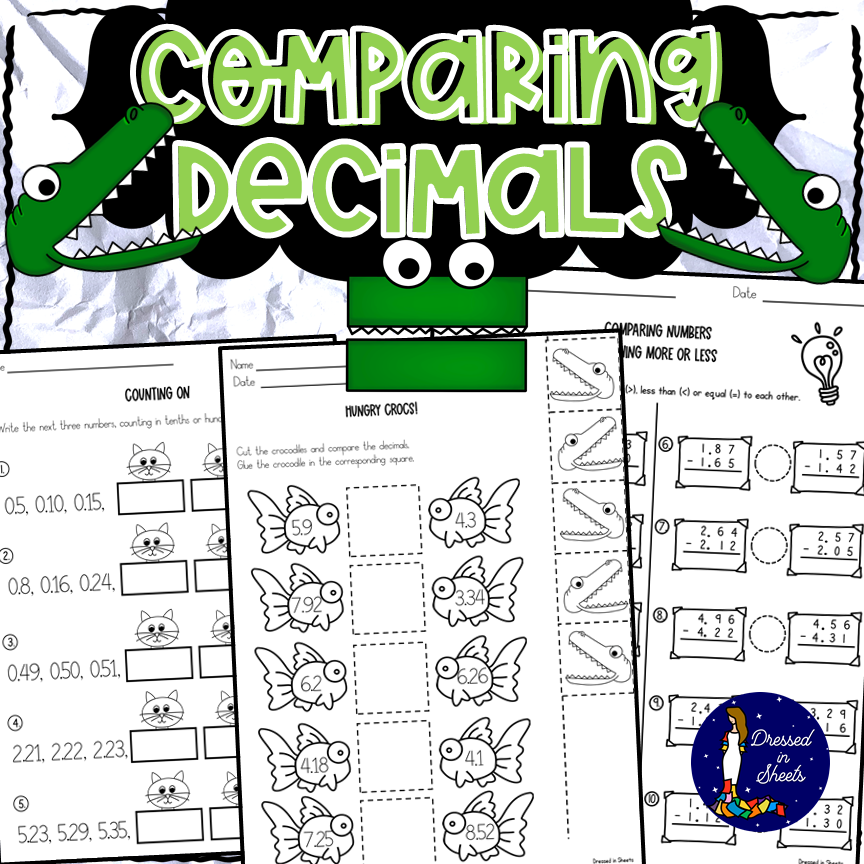 The activities included in this resource will help your students become proficient in comparing decimals. Students will use the more than, less than, & equal to signs to tell their answers. The worksheets included contain math problems that range from easy to difficult for differentiated learning. Some of the activities in this pack will require the use of scissors and glue.