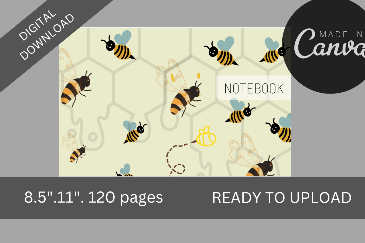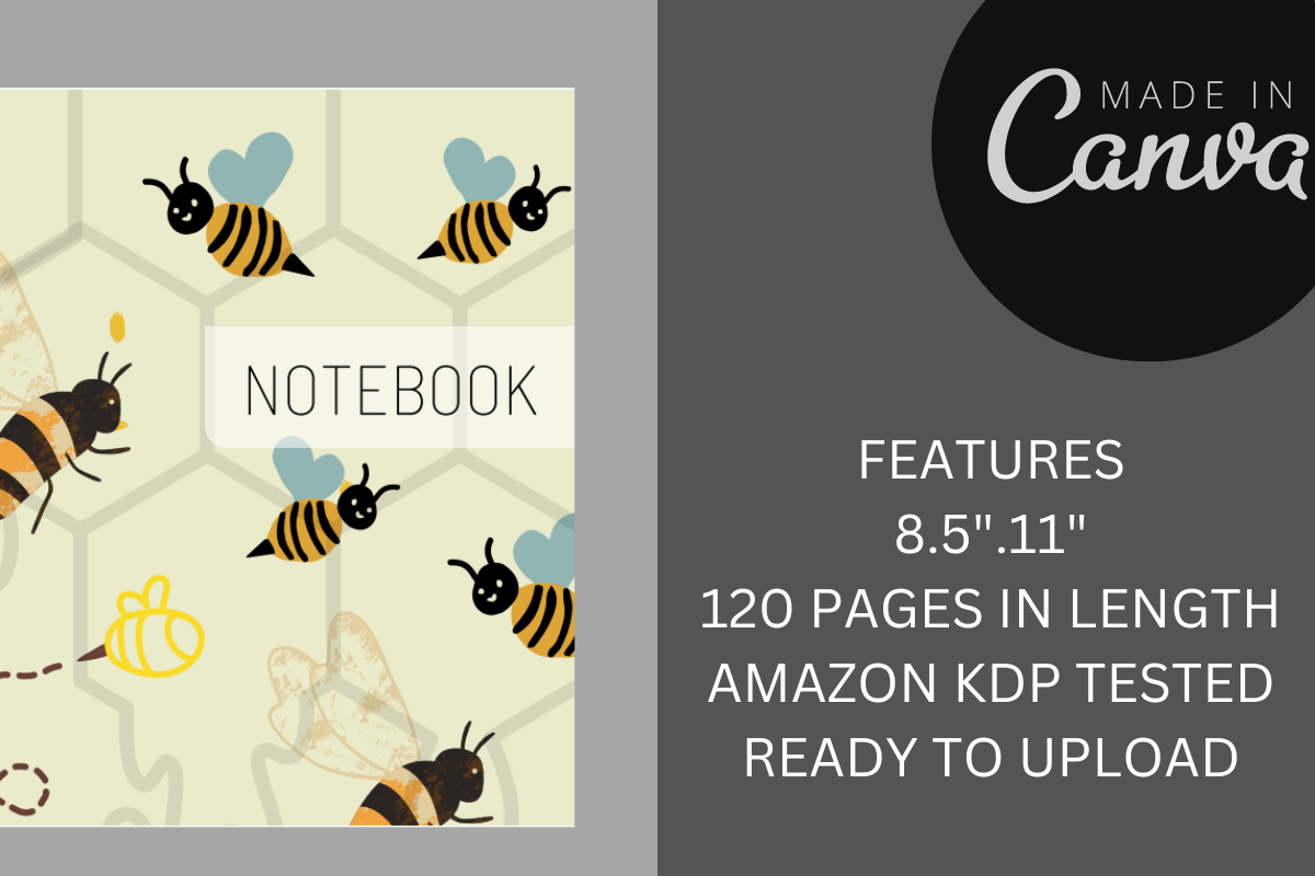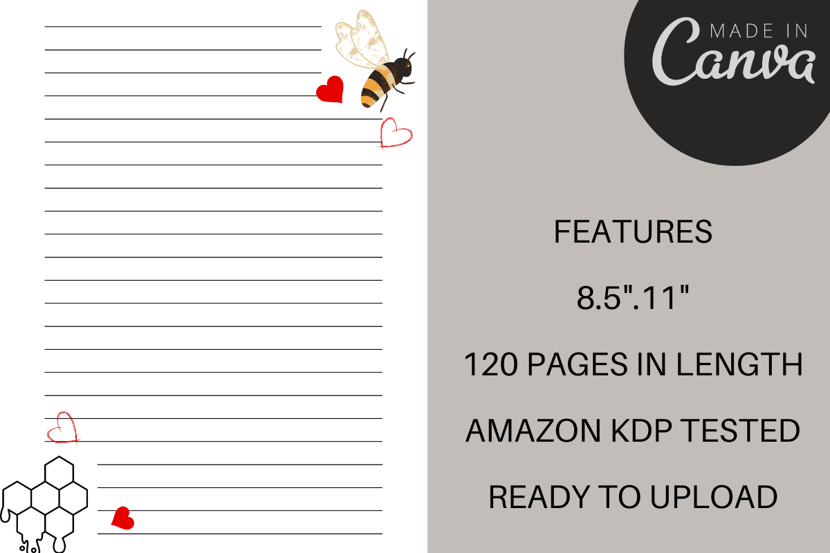 INTERIOR+COVER FOR BEE KDP LINED PAPER, KDP JOURNAL PAPER, KDP LEARN TO WRITE, KDP KIDS JOURNAL, JOURNAL NOTEBOOK MOCKUPS, INTERIOR DESIGN, LOW CONTENT BOOK