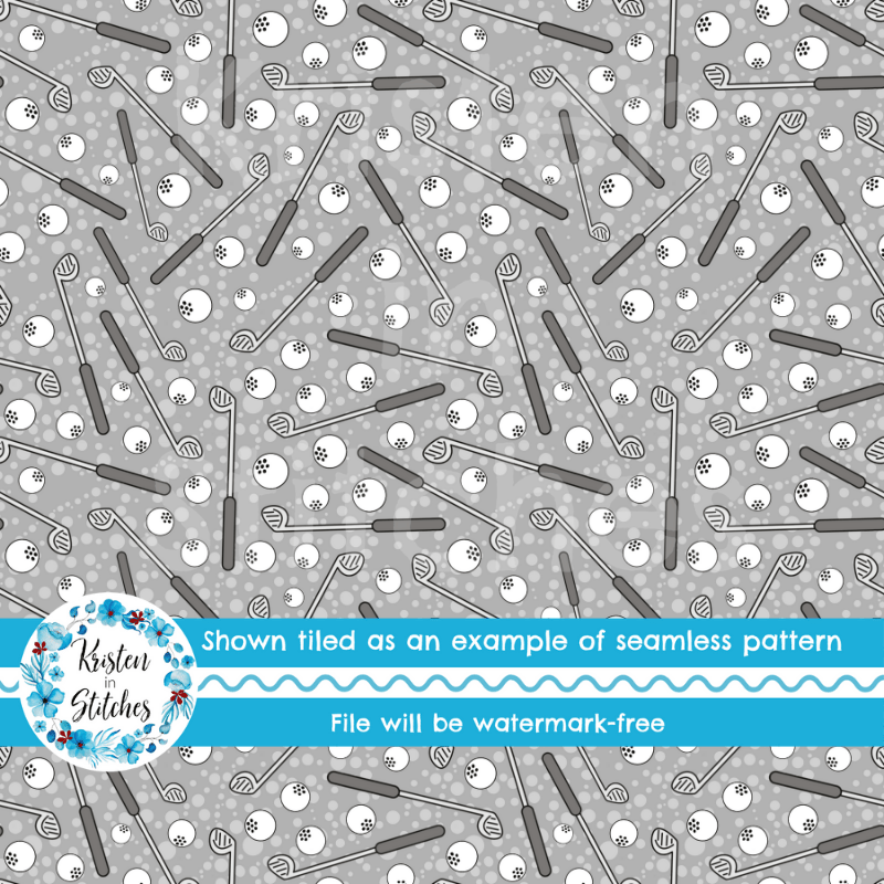 Golf Clubs and Balls Seamless Pattern, Grey