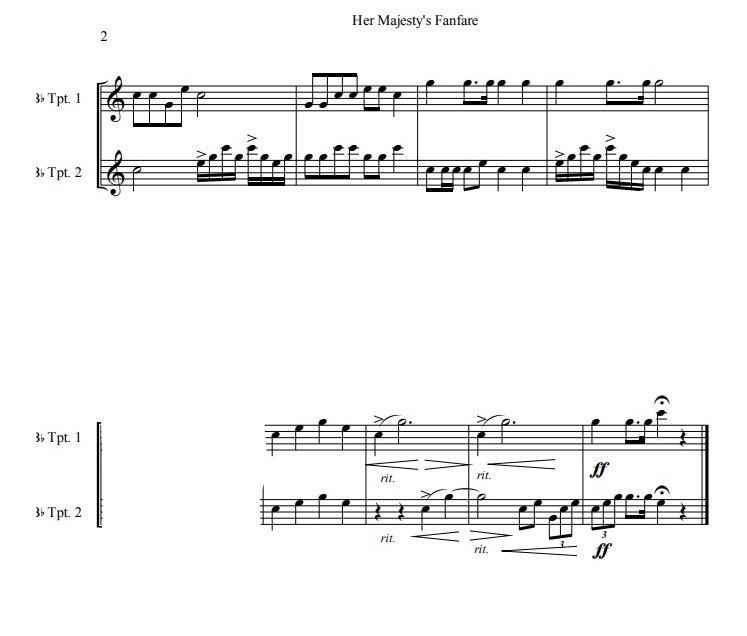 Her Majesty's Fanfare for two trumpets. A variation on The Last Post. (2016)