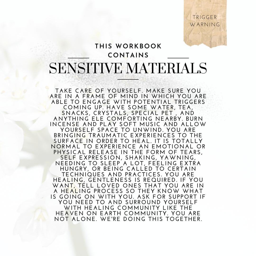 Use this workbook gently, in your own time, as slowly as you need to, and with as much support as possible. It is hard to bring these memories and emotions up but so rewarding and beneficial in all areas of our life when we do. You are already healed. Join the Heaven On Earth App, a supportive spiritual community for sex workers and survivors. It's important to have a support system who can understand and relate to what you're going through while you're doing this healing. You are not alone and you don't have to do it alone.