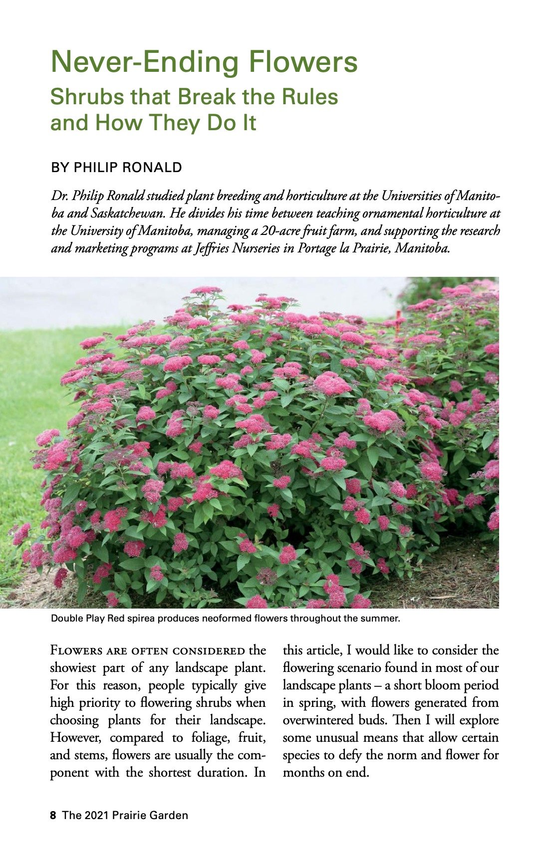 The 2021 edition of The Prairie Garden focuses on flowering shrubs and the queen of flowering shrubs, roses. Always popular topics in the past, they are definitely worth revisiting!