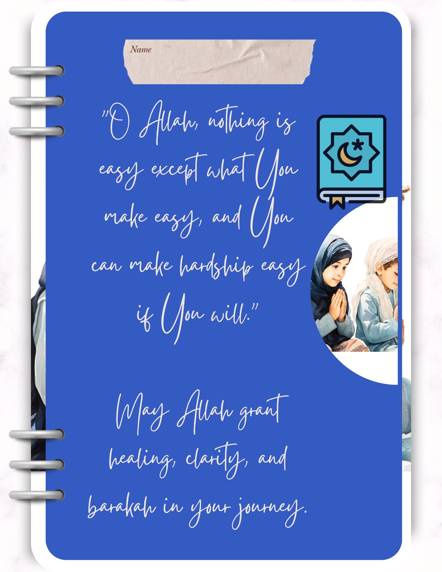 This Dated Mental Health Digital Islamic Journal 2026 is made of Daily reflection prompts based on Islamic teachings, Duas, and verses for comfort and strength, Mindfulness activities with an Islamic belief.