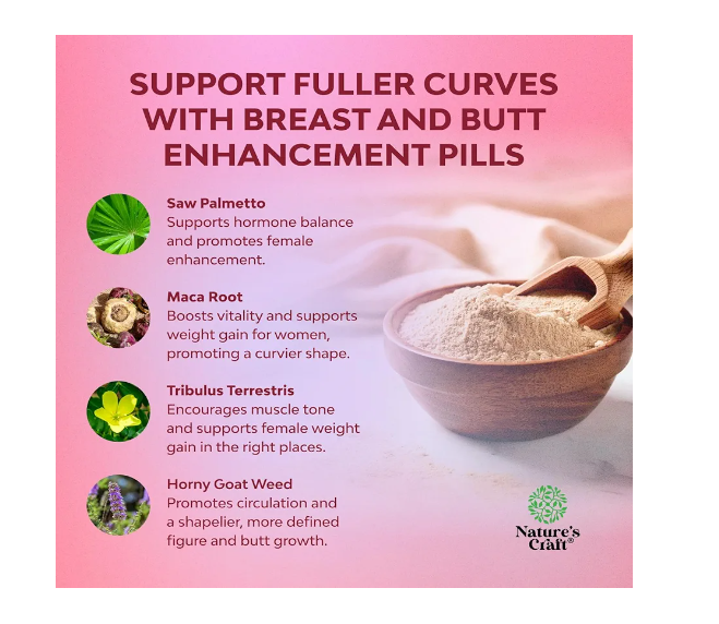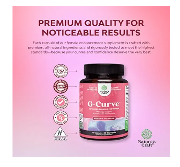 Natures Craft G-Curve Butt and Breast Enhancement Pills - Herbal Enhancer May Support Body Sculpting Curves with Saw Palmetto Extract Horny Goat Weed for Women *Results Vary 60 Count