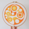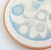 Two colourful geometric counted cross stitch patterns inspired by the designs on the back of a bronze mirror found at Trelan Bahow, Cornwall. It dates back to the 1st century BCE and is now housed in the British Museum.
