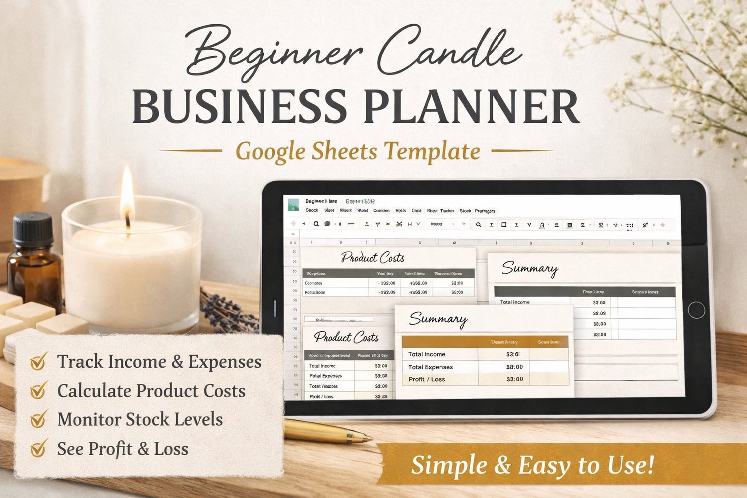 This Beginner Candle Business Planner is designed to give you clarity from day one, without complicated accounting jargon or spreadsheets that feel intimidating.