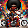 Dive into a world where style knows no bounds with our top-selling PNG bundle featuring 10 stunning images of an extreme caricature stylish black woman. Each image brings to life a bold character with a large afro and sunglasses, dressed in colorful Ankara print outfits inspired by the flamboyant 70s, all while seated on a lowrider bicycle against a backdrop bursting with vibrant, graffiti-style art. This collection is not just a set of images; it's a gateway to creativity and a tribute to iconic fashion.