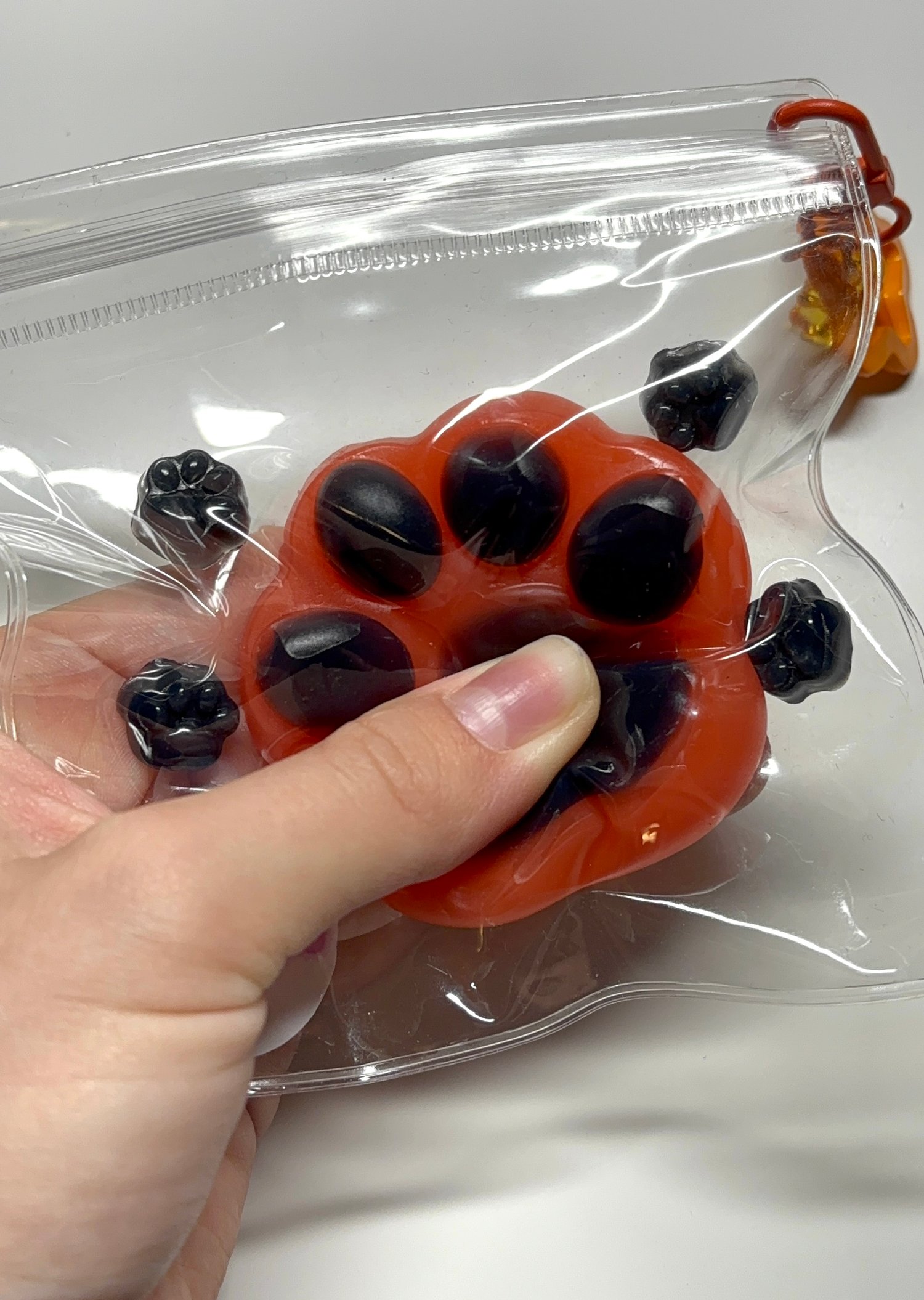 Contains 3 Squishies -Halloween Paw (+4 black mini paws), Pumpkin, 6 Halloween Mini Paws (2 black, 2 green, 2 orange).