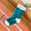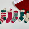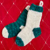 Knit in the specified yarn and stitches, this pattern makes 6” long miniature stockings, but the pattern also includes instructions for adapting to any yarn weight and number of stitches, including a full-size stocking.