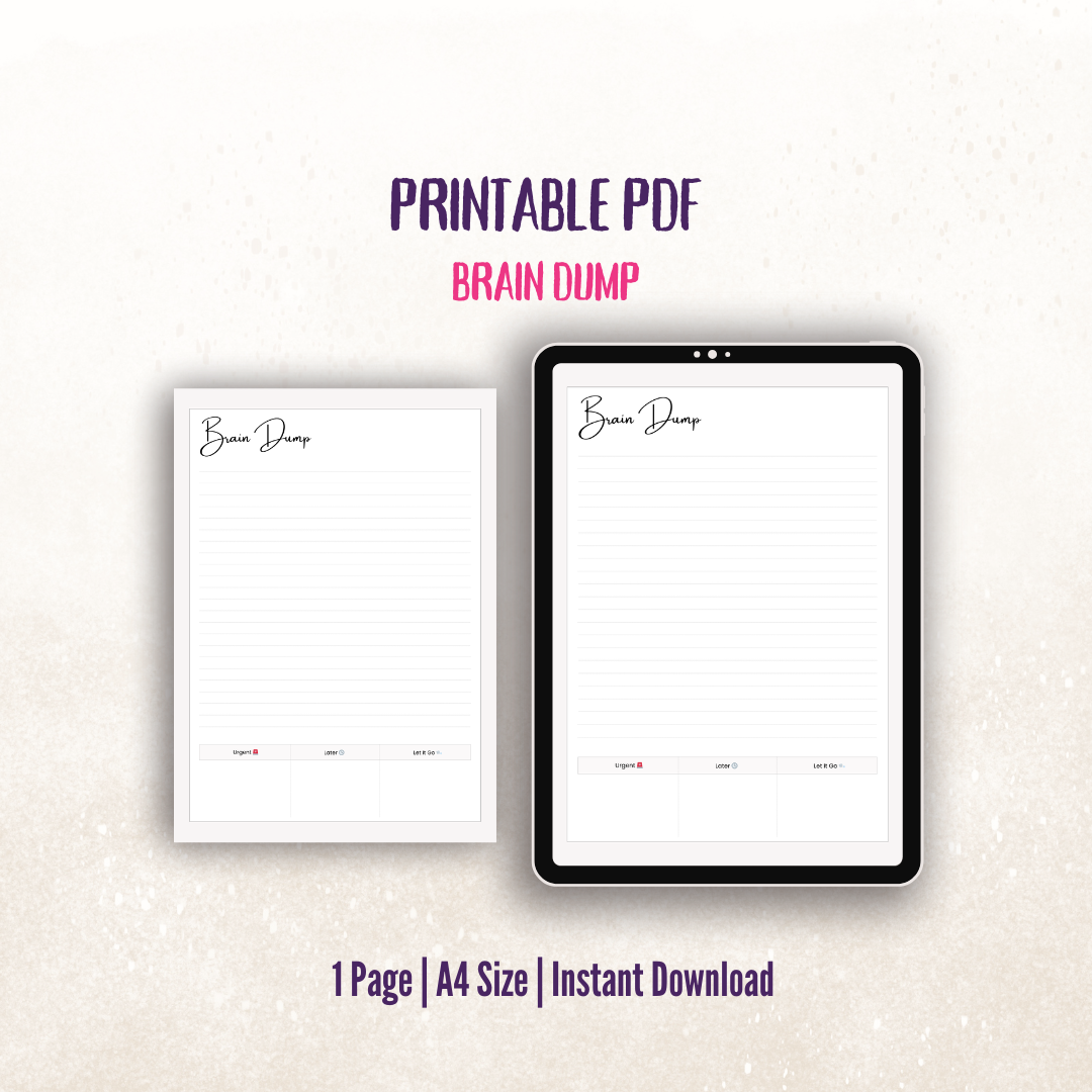 You’ll receive instant access to your downloadable brain dump page, ready to print on standard A4 paper. Use it as often as needed to declutter your mind and reset your focus.