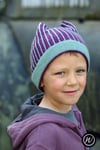 This striking design is simpler than it looks! The vertical stripes are achieved through stranded colourwork, and is the perfect pattern for trying this technique. The deep folded brim ensures warmth and a good fit.