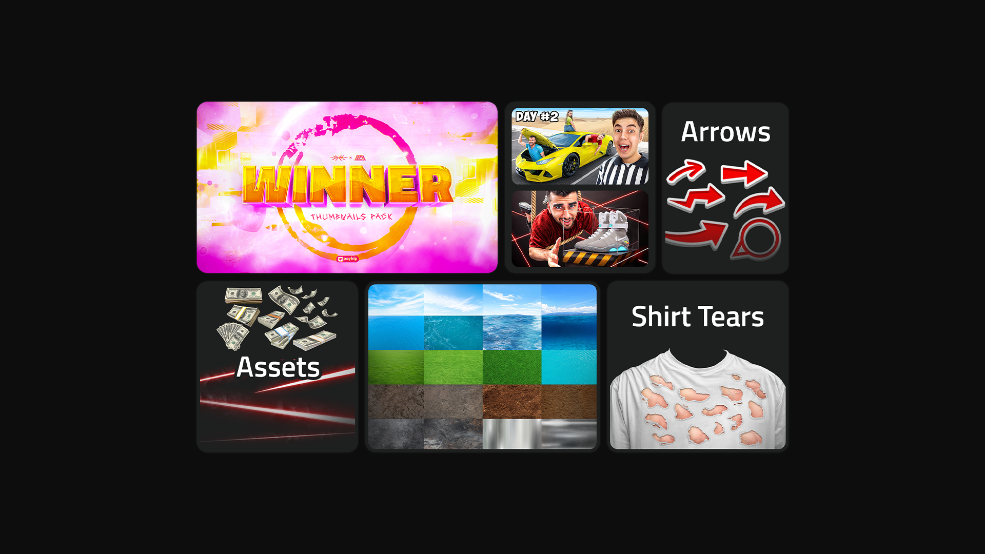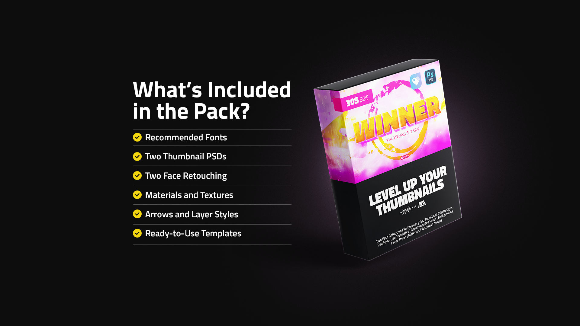 Explore the Winner Thumbnails Pack through the video to see everything you need for creating professional, eye-catching thumbnails. Discover the tools and features included.