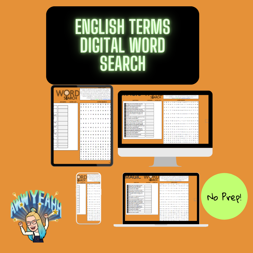 Perfect for classroom use or at-home learning, "English Terms Digital Word Search" is an excellent way to make English language review fun and effective. Download now and watch your students' skills and confidence soar!