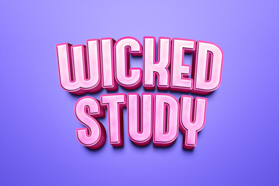 Bold, glossy 3D cartoon-style effect with a fun, vibrant aesthetic. The text has a thick, rounded 3D appearance, giving each letter a soft, inflated look. Complements the pink text and intensifies the playful, stylized feel.