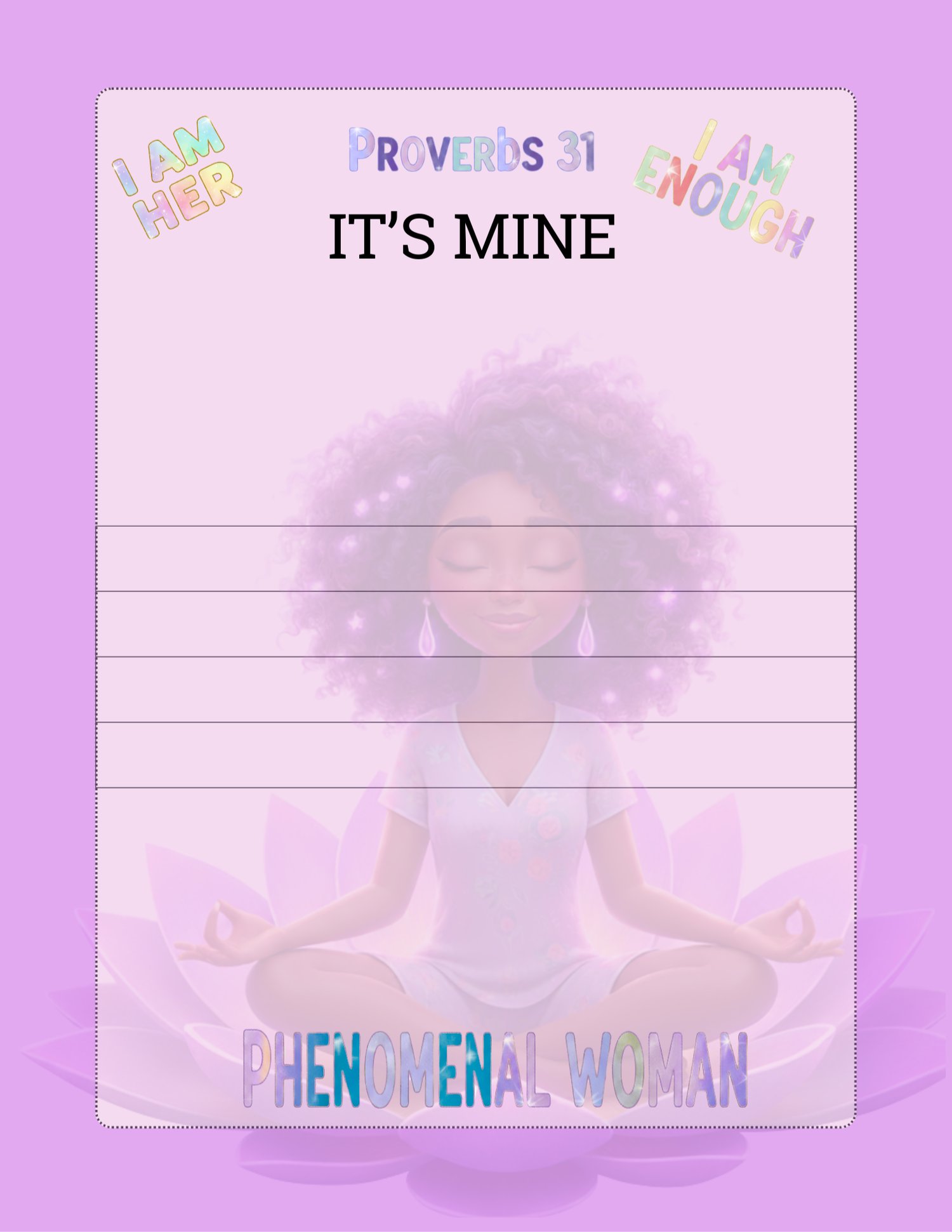 🌸 Beautiful digital design featuring calming colors and empowering quotes like “I Am Enough” and “I Am Her”