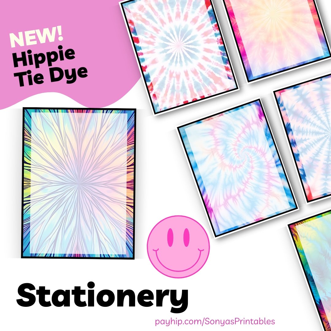 Step back in time and embrace the groovy vibes of the 60s and 70s with our Printable Hippie Tie Dye Stationery! Perfect for anyone who loves bold and colorful tie dye designs, whether you use it as stationery or notepaper. Get ready to add a splash of retro, hippie charm to your correspondence or notes.