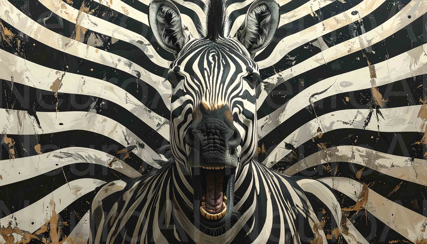 Striking zebra portrait with bold stripe backdrop