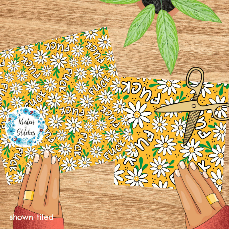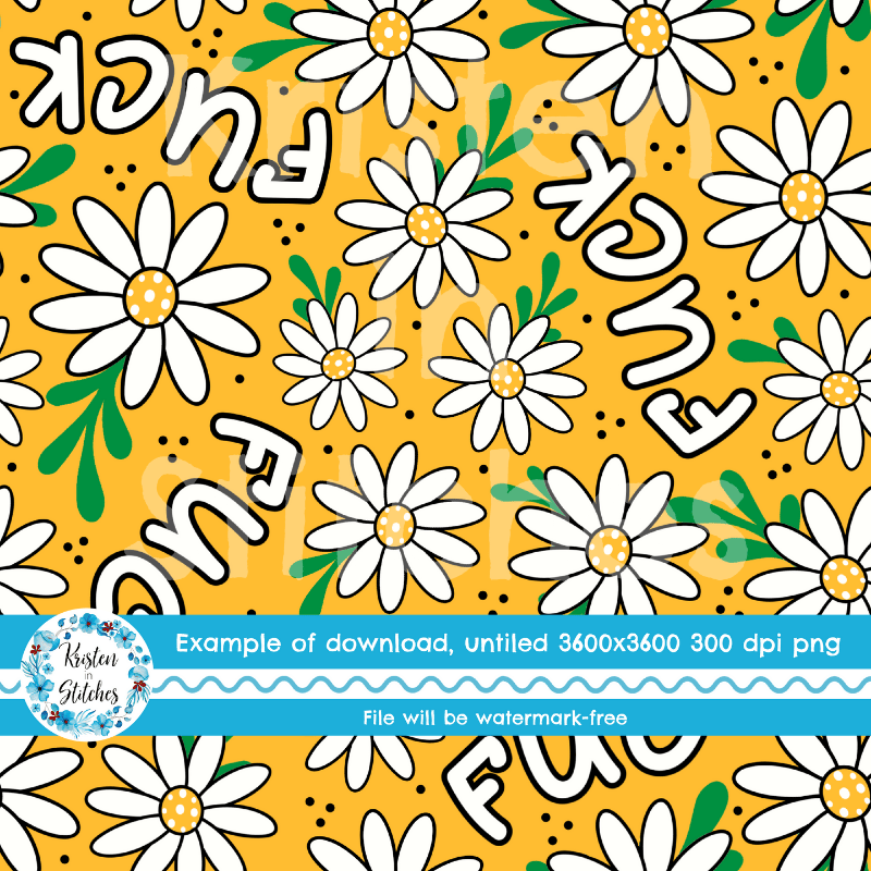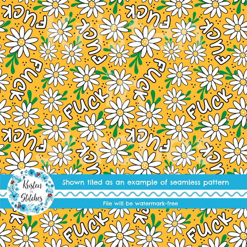 F Words and Daisy Flowers Seamless Pattern, Pretty Profanities Fuck