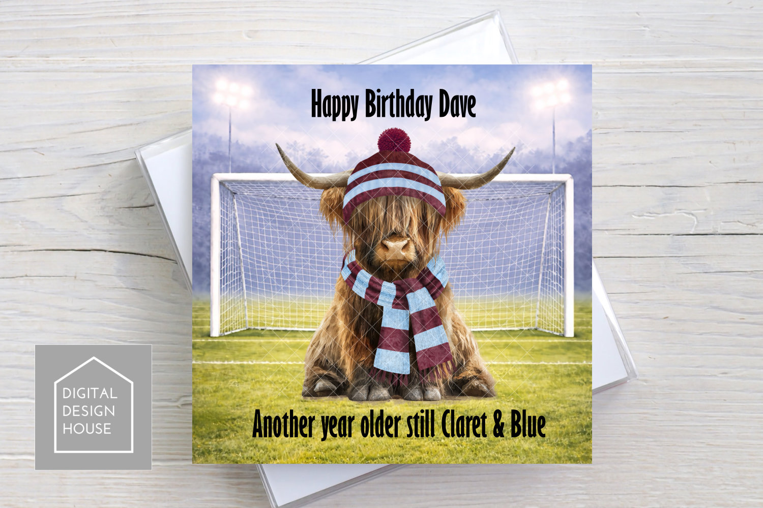 Football Highland Cow PNG Bundle – 20 Team Colours Included – Soccer Cow Sublimation Design – Sports Fan Birthday Card – Instant Download