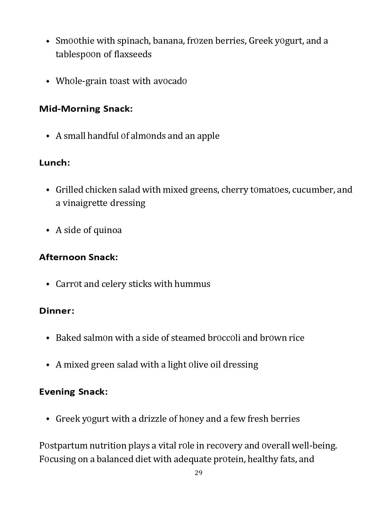 - Postpartum Nutrition: Learn about the nutritional needs after birth, including how to support breastfeeding and recovery with optimal food choices.