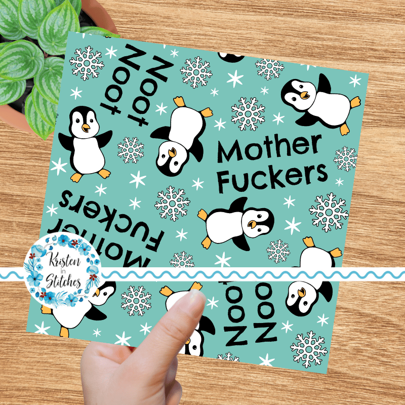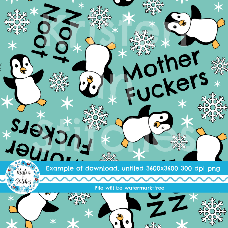 Noot Noot Mother Fuckers sweary seamless pattern with penguins.