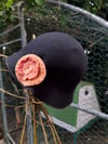 PAYF Black Felt Cloche Hat with Hand Embroidered Flower