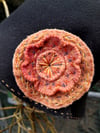 A black wool felt cloche style hat with hand embroidered wool felt flower detail. Flower detail was made with scraps of washed up.wool.jumper, then hand embroidered with waste embroidery threads, many untangledamd saved from the bin.