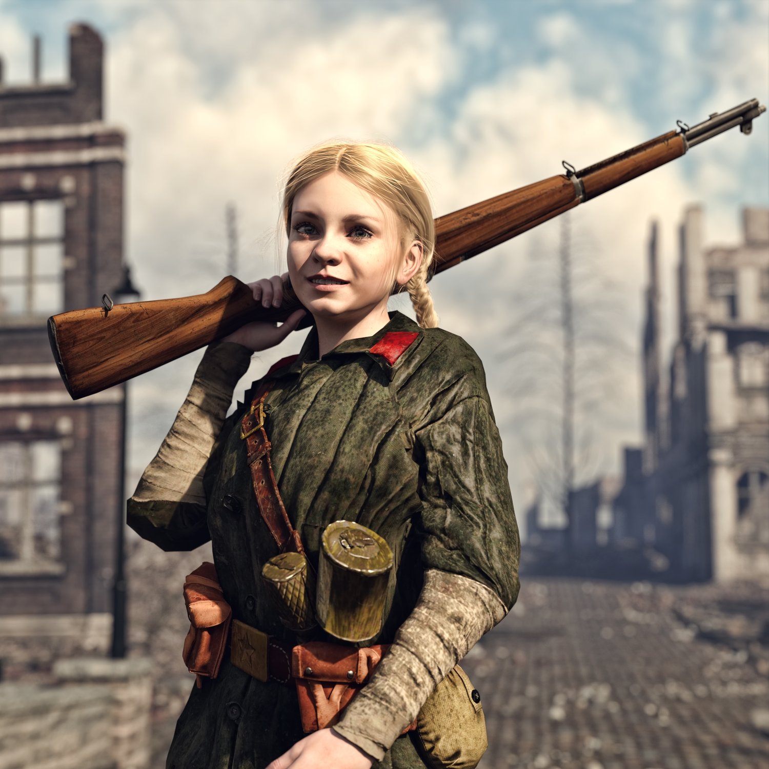One of the most famous rifles coming from WW2 era. First mass produced semi automatic rifle for US forces. Trigger, bolt, clip etc also rigged for more realistic pictures.