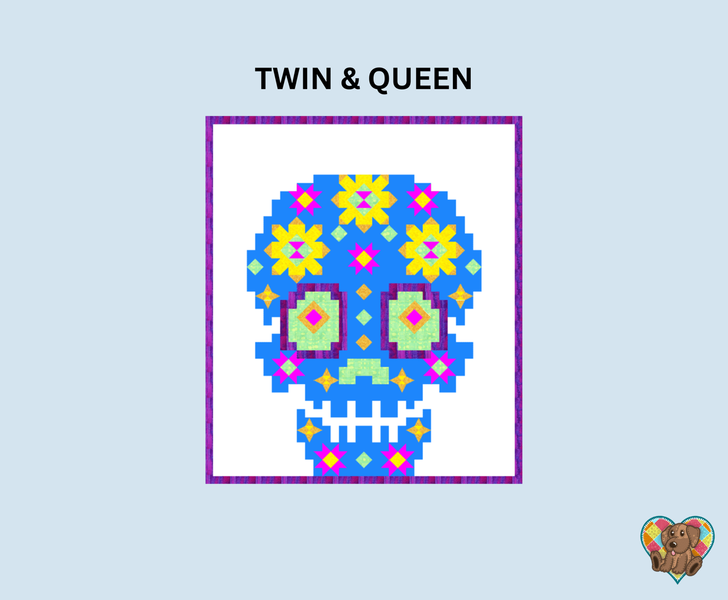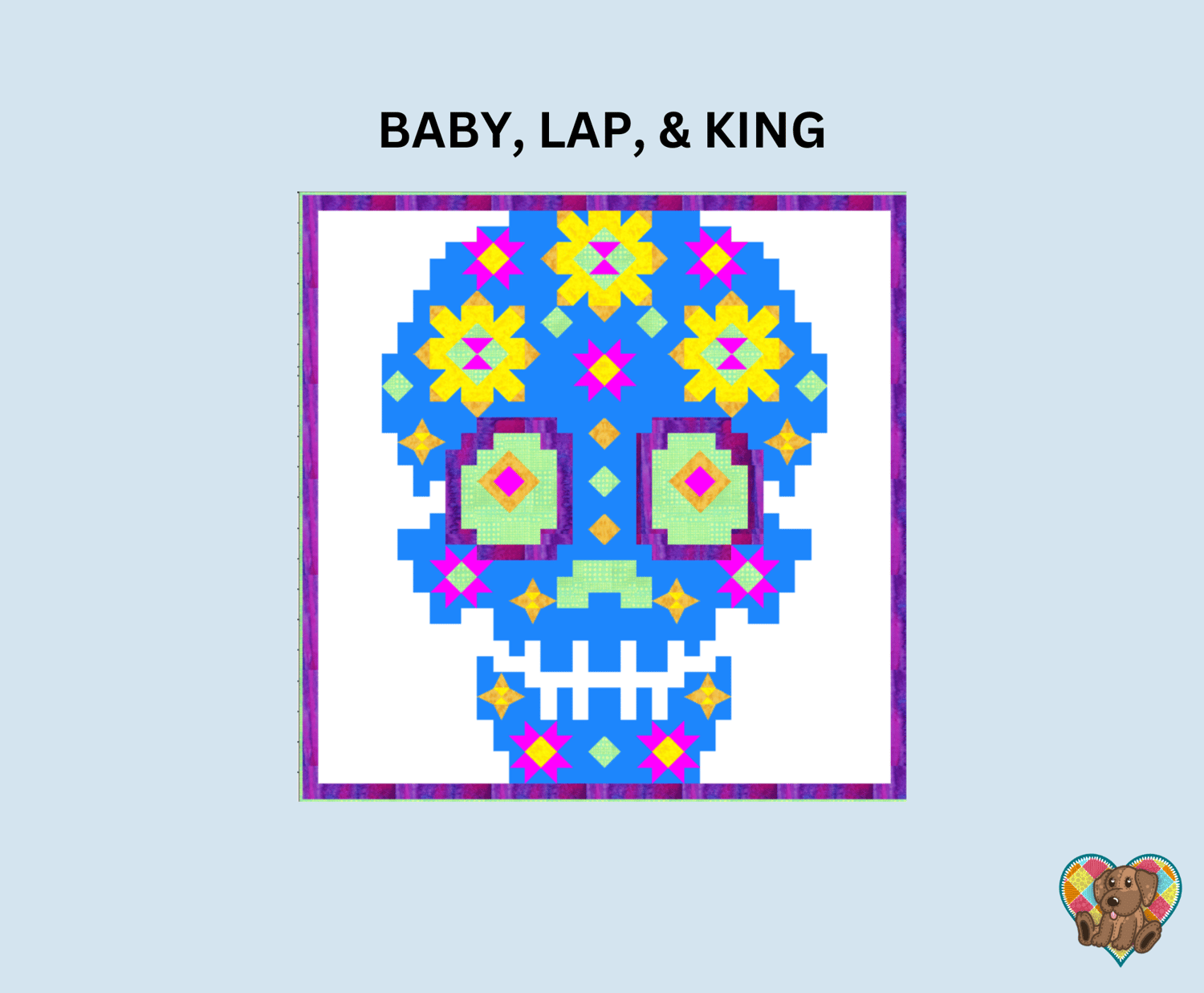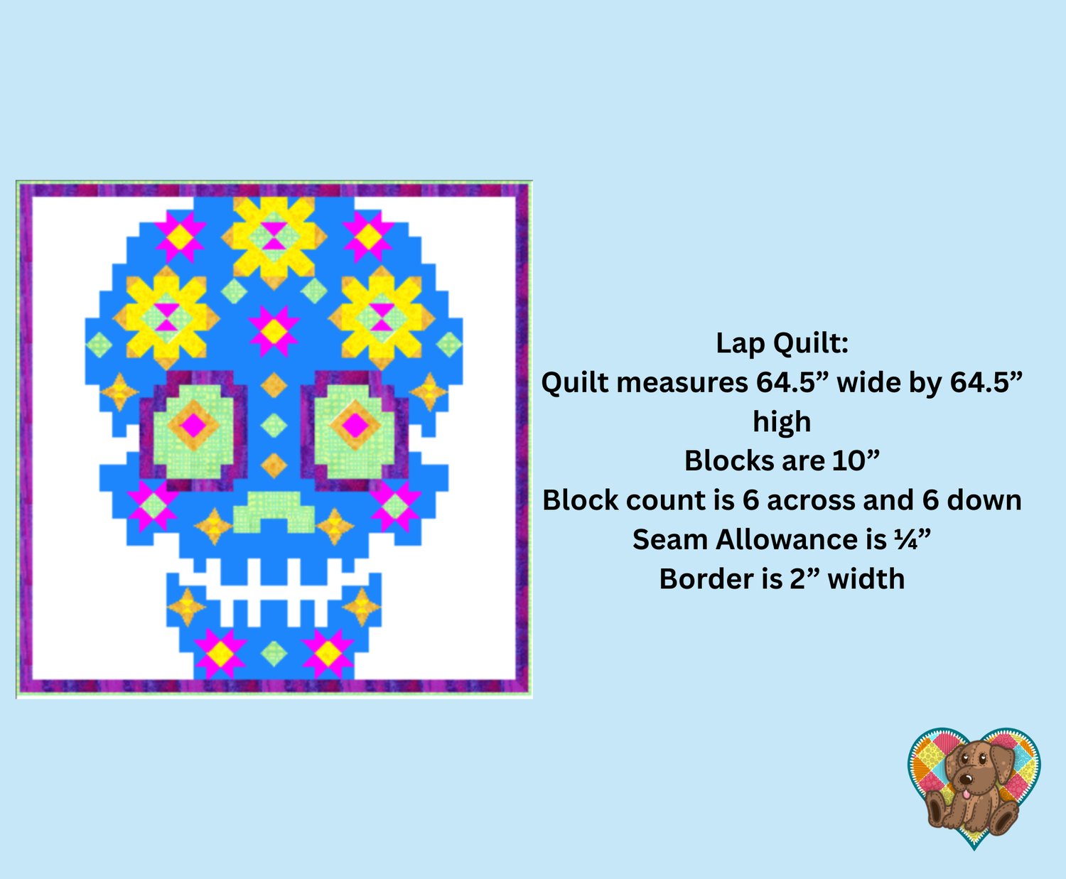 Whether you're in it for the sweets or the scares, this sugary, spooky quilt pattern has got it all. Replace the colorful sections with white for a classic skull look, or swap them around to create your own colorful sugar skull. The possibilities are endless.