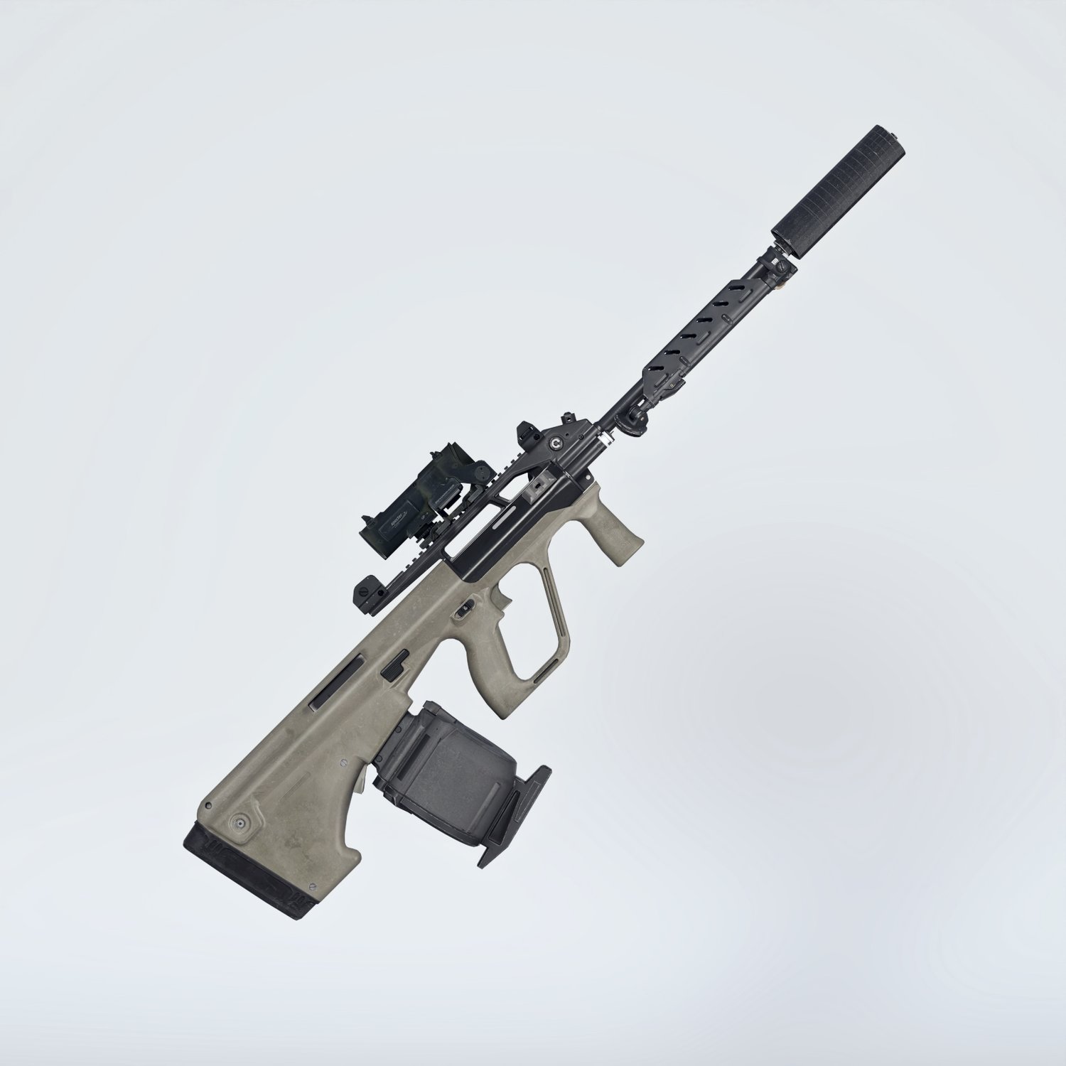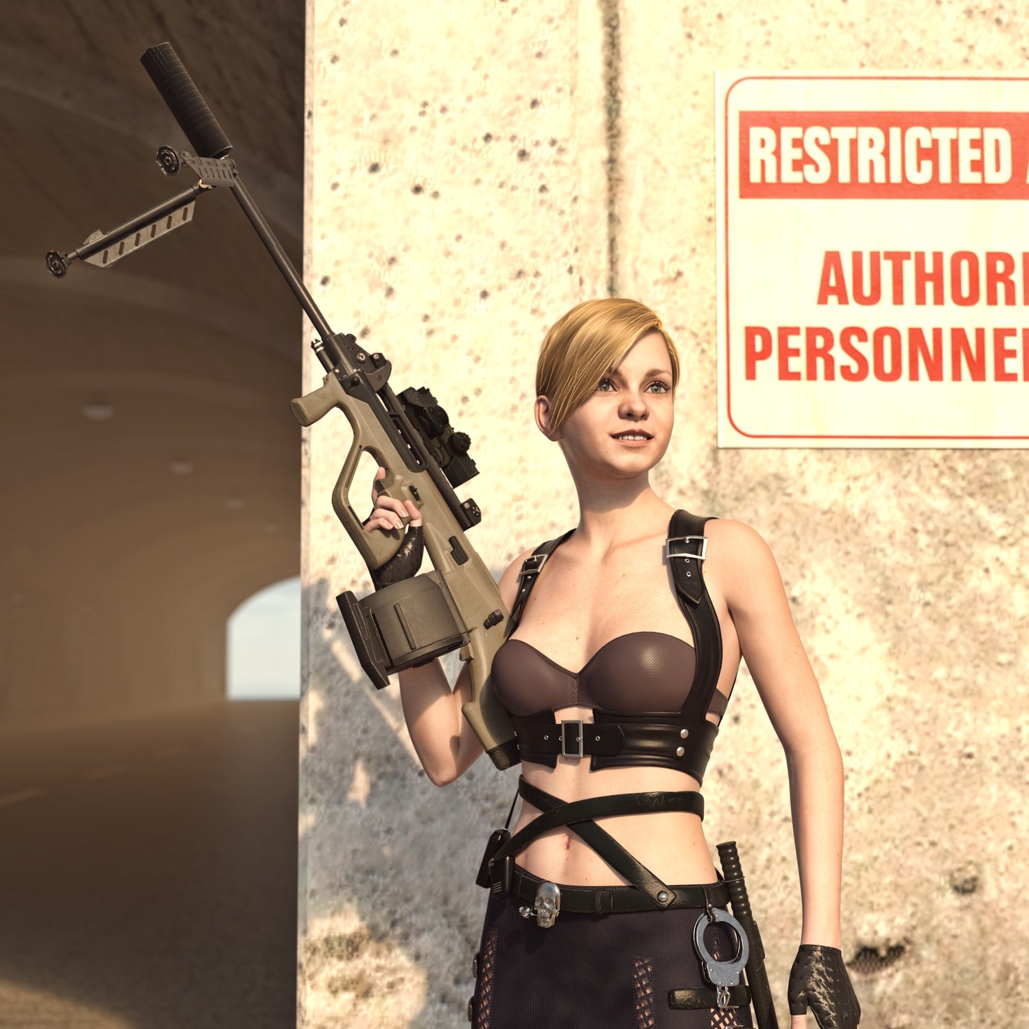 One of the most famous bullpup guns, now in machinegun configuration. Light (more or less), cool looking, with plenty of accessories to configure your gun. The prop is rigged and converted for use with DAZ. Trigger, charging handle, bolt, bipod, etc also rigged for more realistic pictures. Includes a silencer, a drum mag and a scope. All can be hidden if needed.