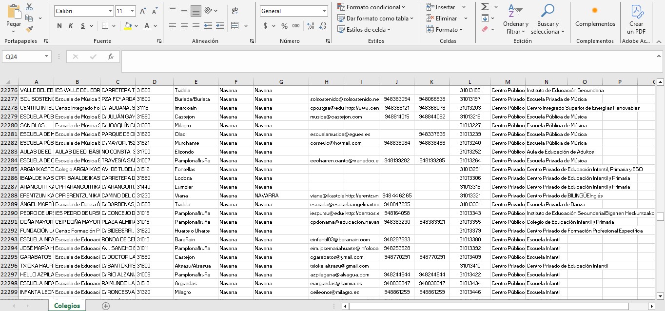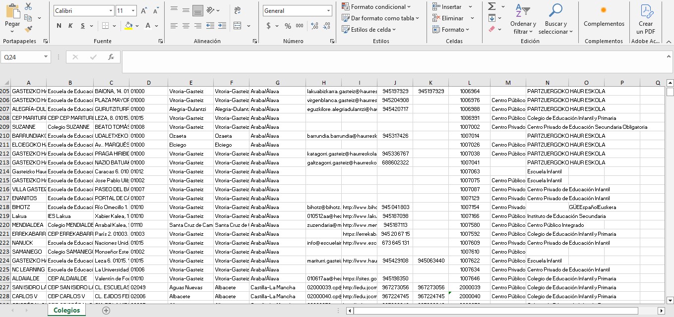 Base de datos de 33.160 Colegios de España