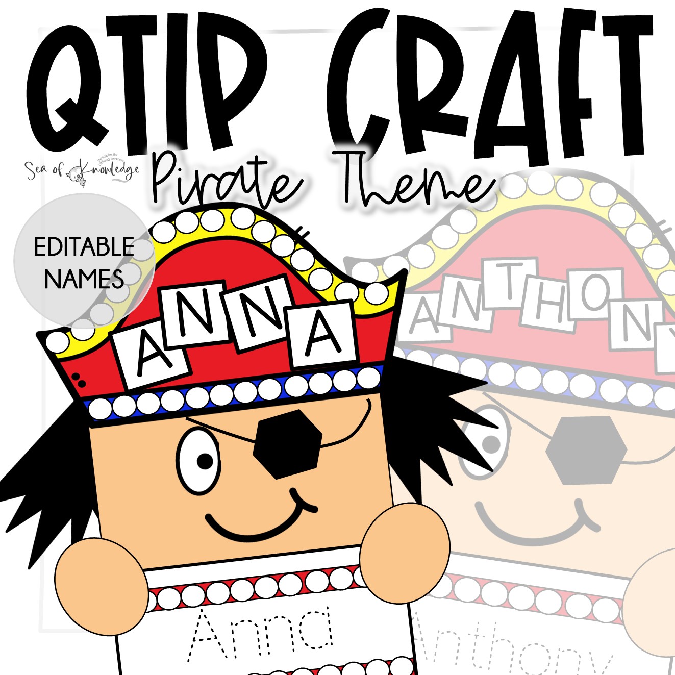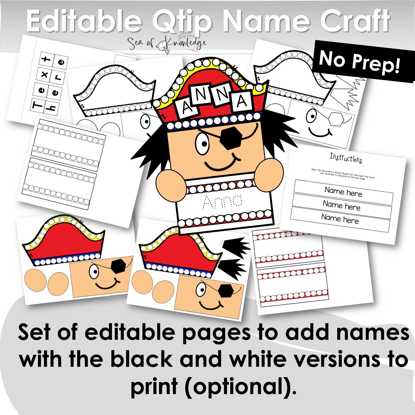 Use this editable pirate themed name Craft which includes qtip painting and editable name boxes for name recognition or a fun bulletin board display! A super cute spring or summer themed name and fine motor task.