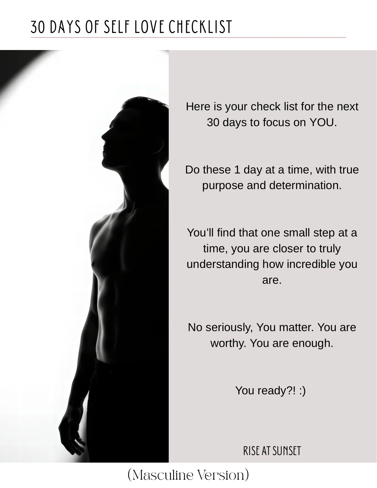 It’s easy to put your needs last. But you MATTER enough to be prioritized first from time to time. Self love is important for raising our self esteem. Use this 30 day checklist to show yourself some love & to prioritize YOU.