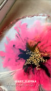 This unique coaster, 14 cm in diameter, is crafted from Italian epoxy resin and features a hand-painted poppy flower. The crystalline edge adds elegance, while the vibrant red and black tones combined with golden accents make this coaster a true piece of art.