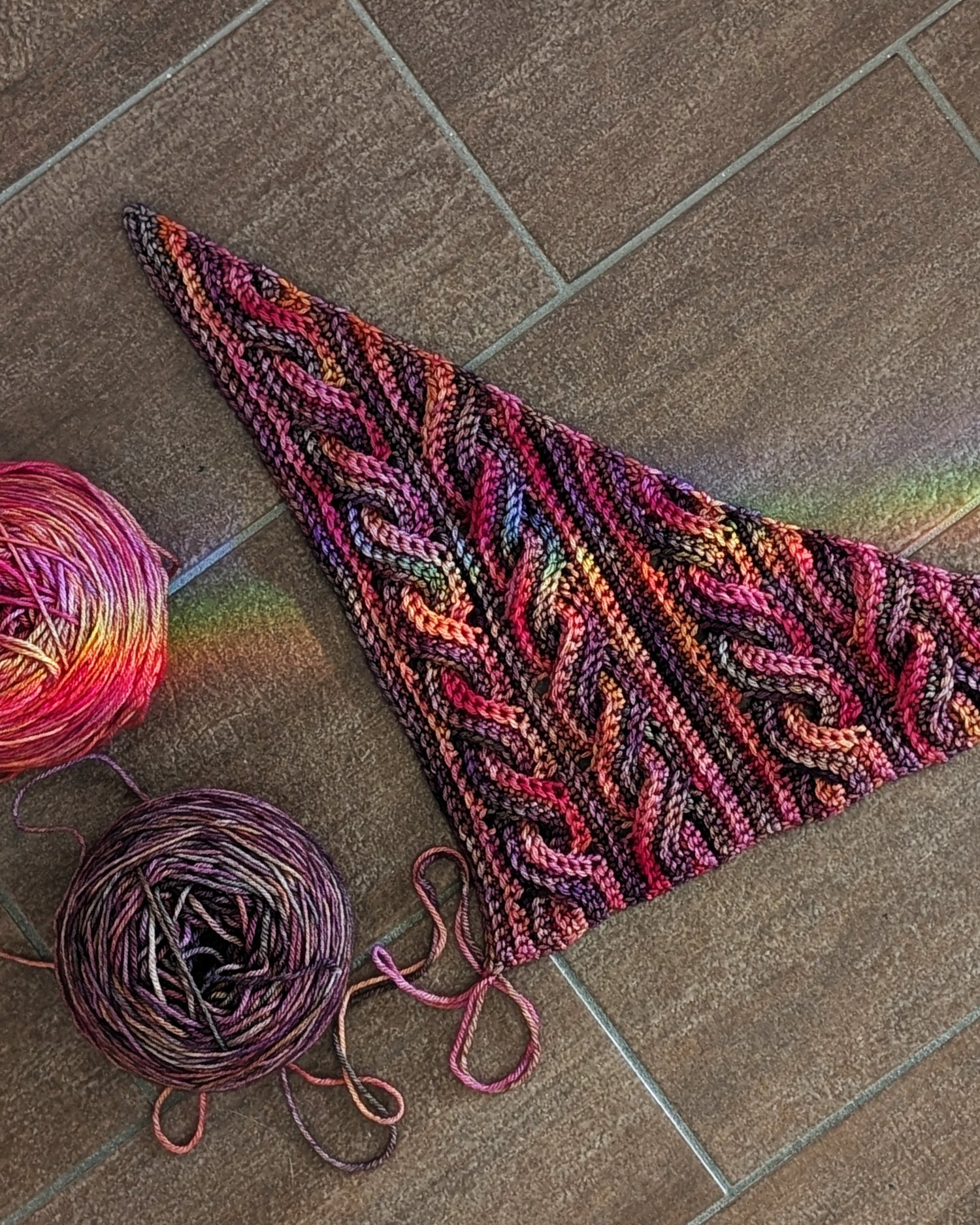 At first, I hesitated to use so many cables in one piece, I often pair them with other stitch patterns (see Chocomania, Biscolata, and Caramella for examples). But this shawl found its own gentle flow, and I hope you will enjoy it too.