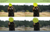 Danica challenges herself to blow to pop a green balloon outdoors.