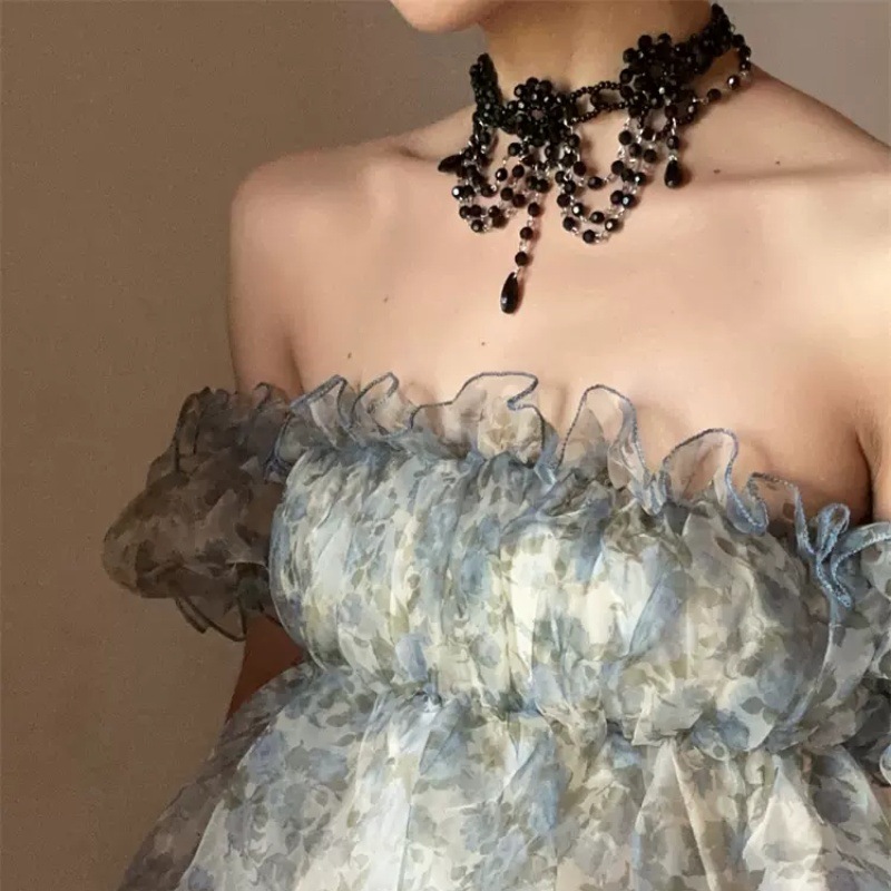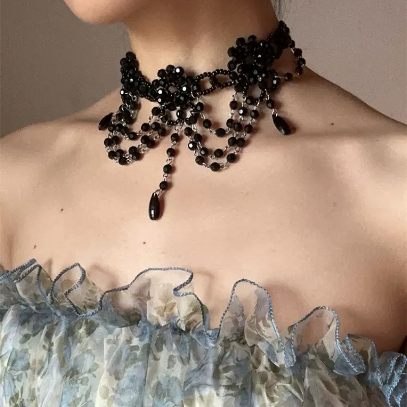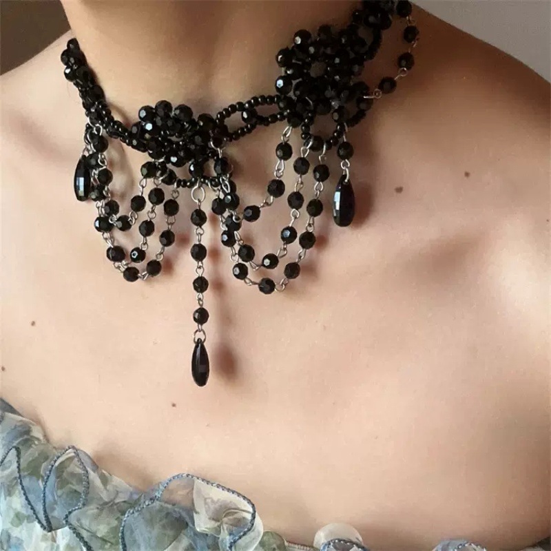 Dark Night Manor Gothic knight hand-beaded black necklace choker