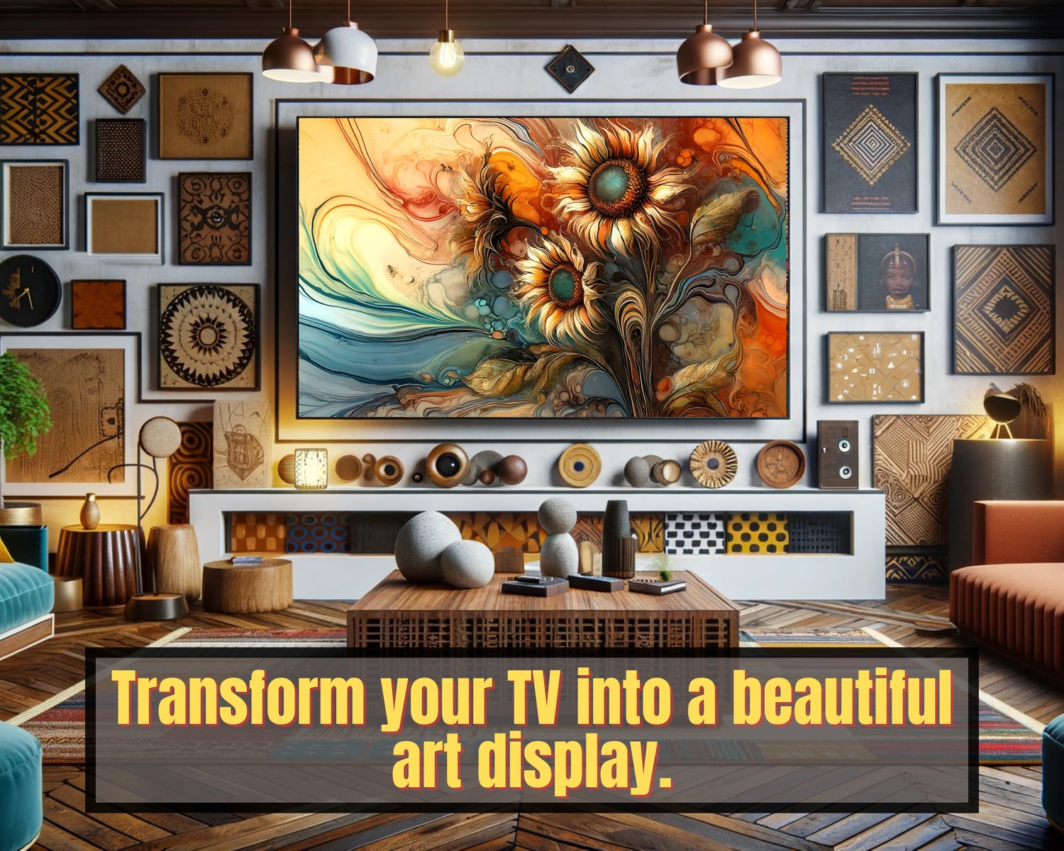 Samsung Frame TV Art - Sunflower Fluid Abstract Art