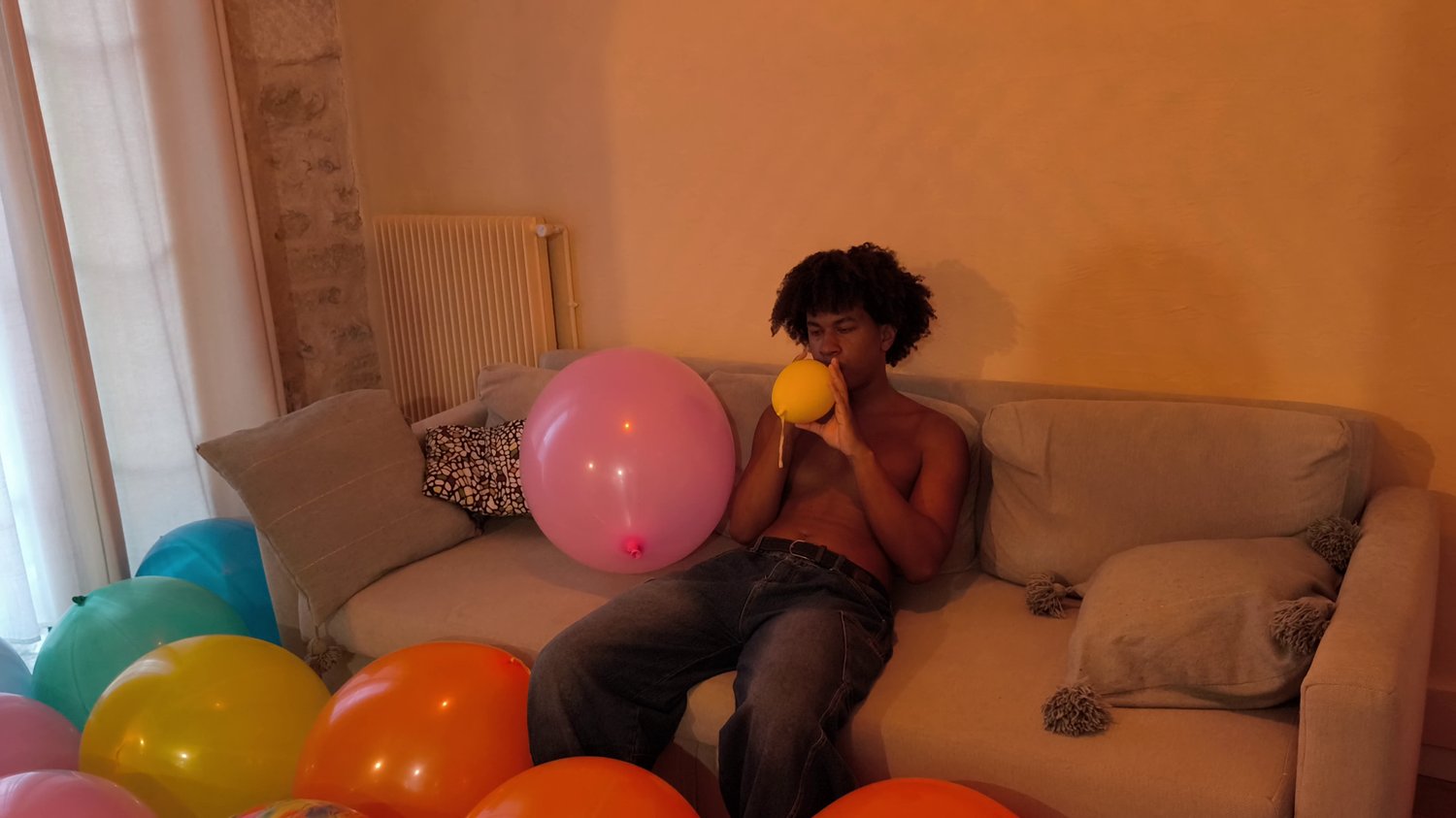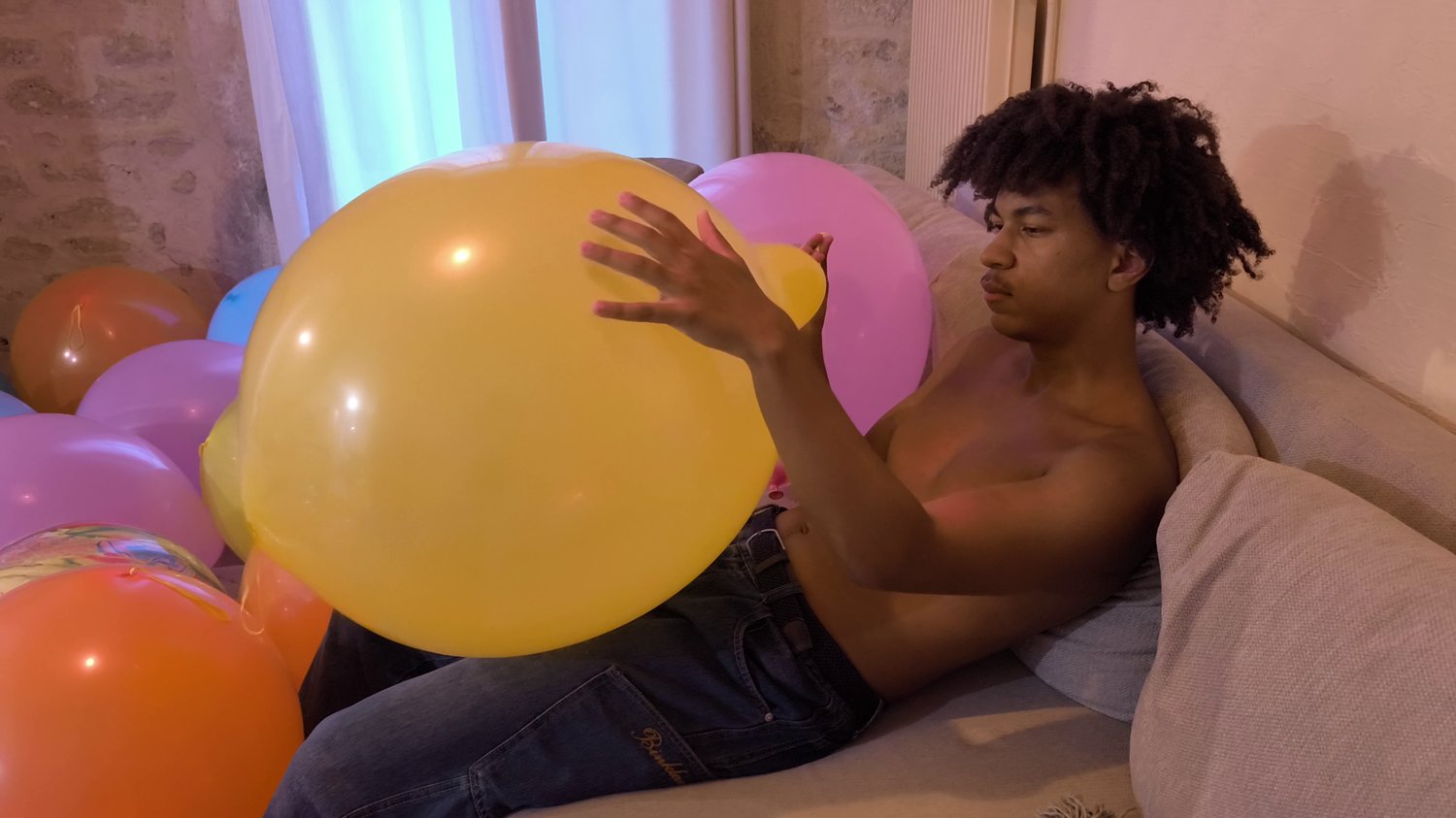 In this video i give to Lucas one punch balloon to blow.