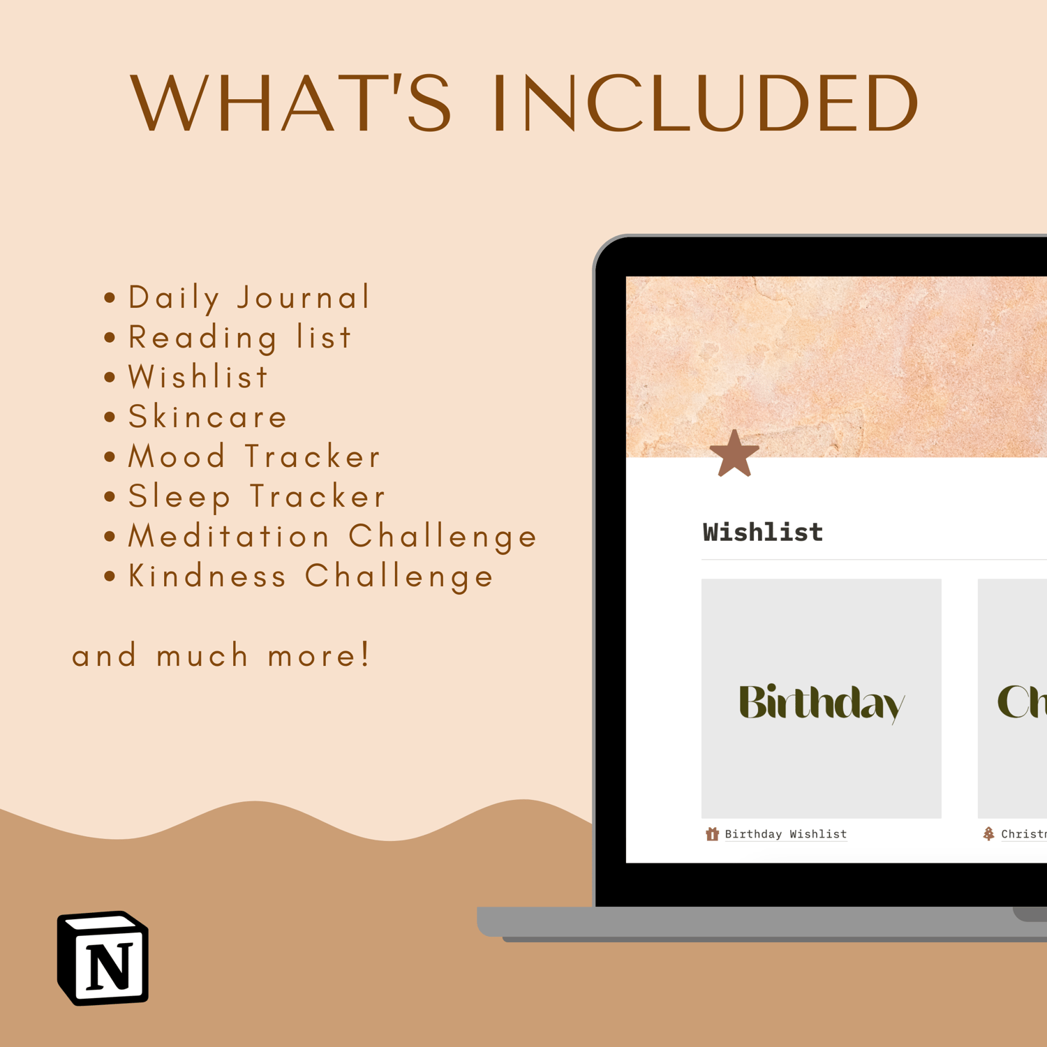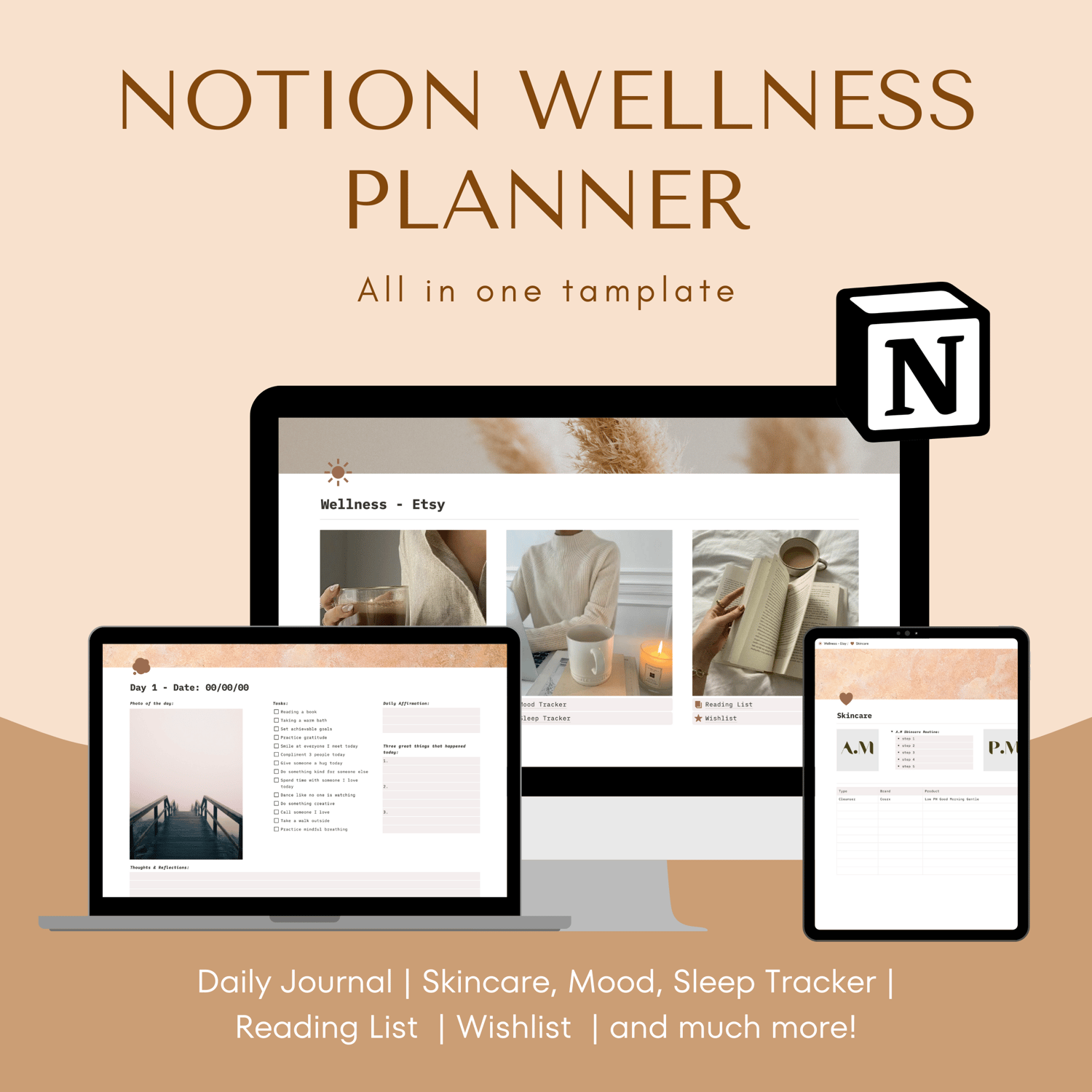 Notion Dashboard Template: Wellness & Health Planner, Daily Habit Tracker, Personal Growth, Get Healthy in your Journey with this Template