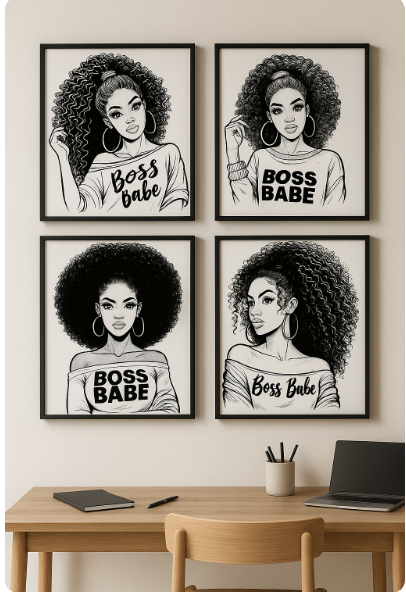 Whether you’re building an inspiring workspace or just want to express your personality, these prints are a celebration of strength, beauty, and unapologetic ambition.