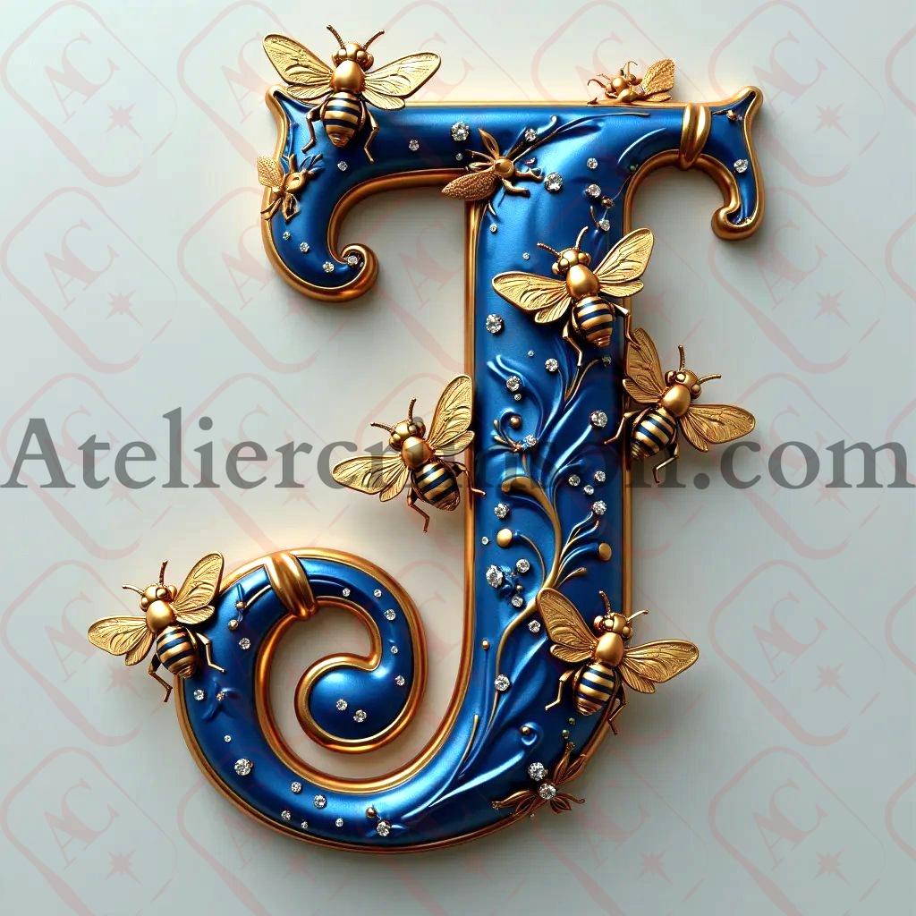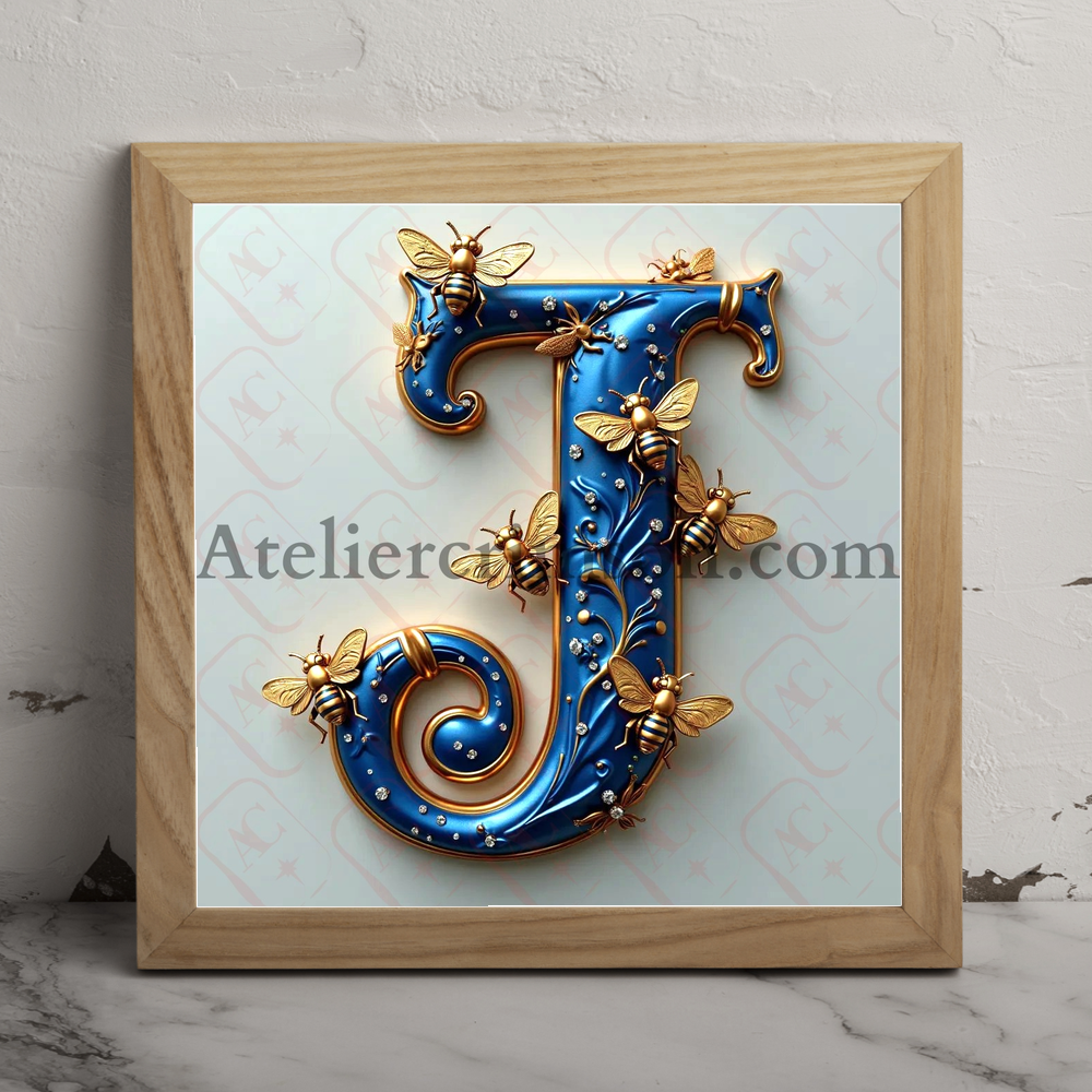 The letter J royal blue bees Download Now this high quality AI-generated image, perfect for adding a touch of tranquility and creativity to any space.