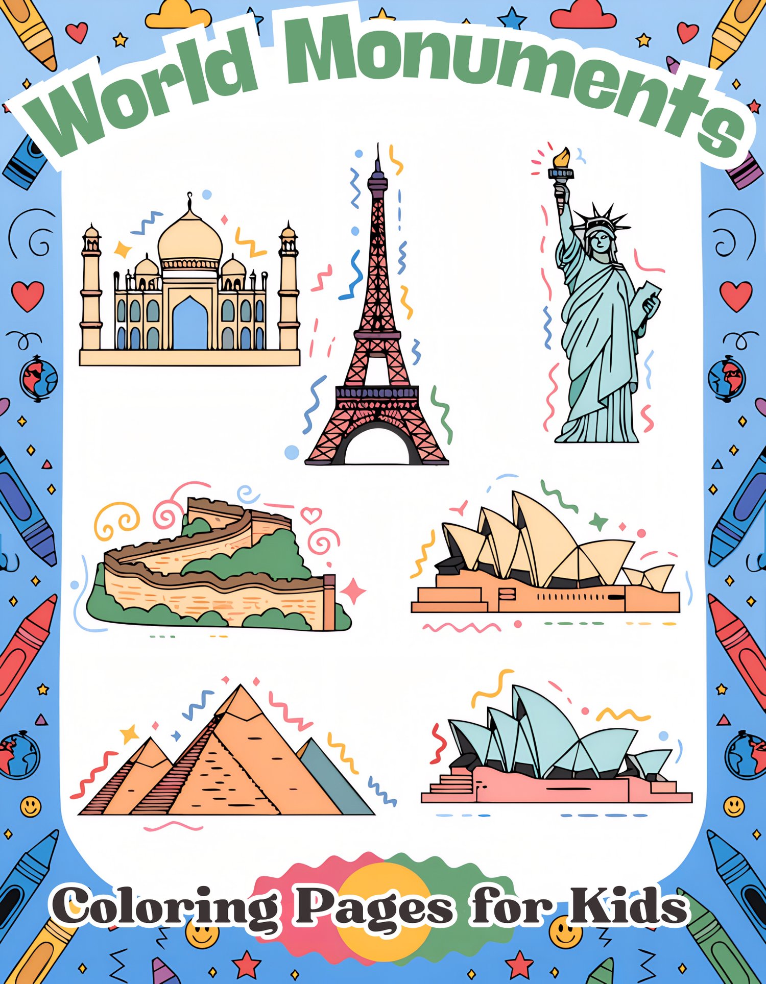 100 Famous Monuments Coloring Pages for Kids – Digital Download Bundle