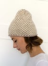 MOSAIC HAT is extremely warm and cozy. It combines two yarn shades, off-white and beige. This trendy design is a perfect winter accessory, double thick due to the stitch pattern