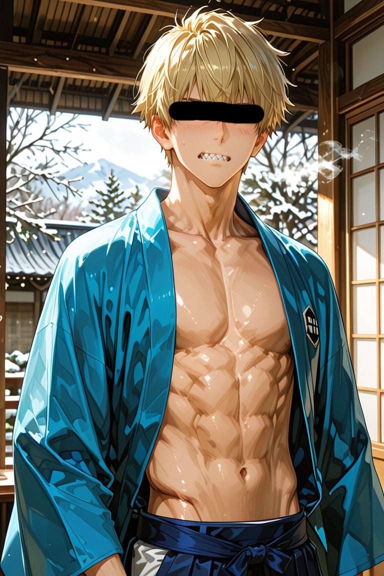 日本の正月をテーマに、着物を着用している男性を、キャラクターごとにお任せ作成しました。男らしいキャラクターの魅力を思い切って表現しました。