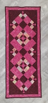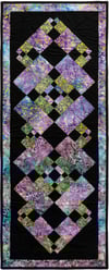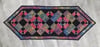 The colorful squares and rectangles appear to float above the background. You can make it rectangular, or leave off the corner triangles for a tablerunner with pointed ends.