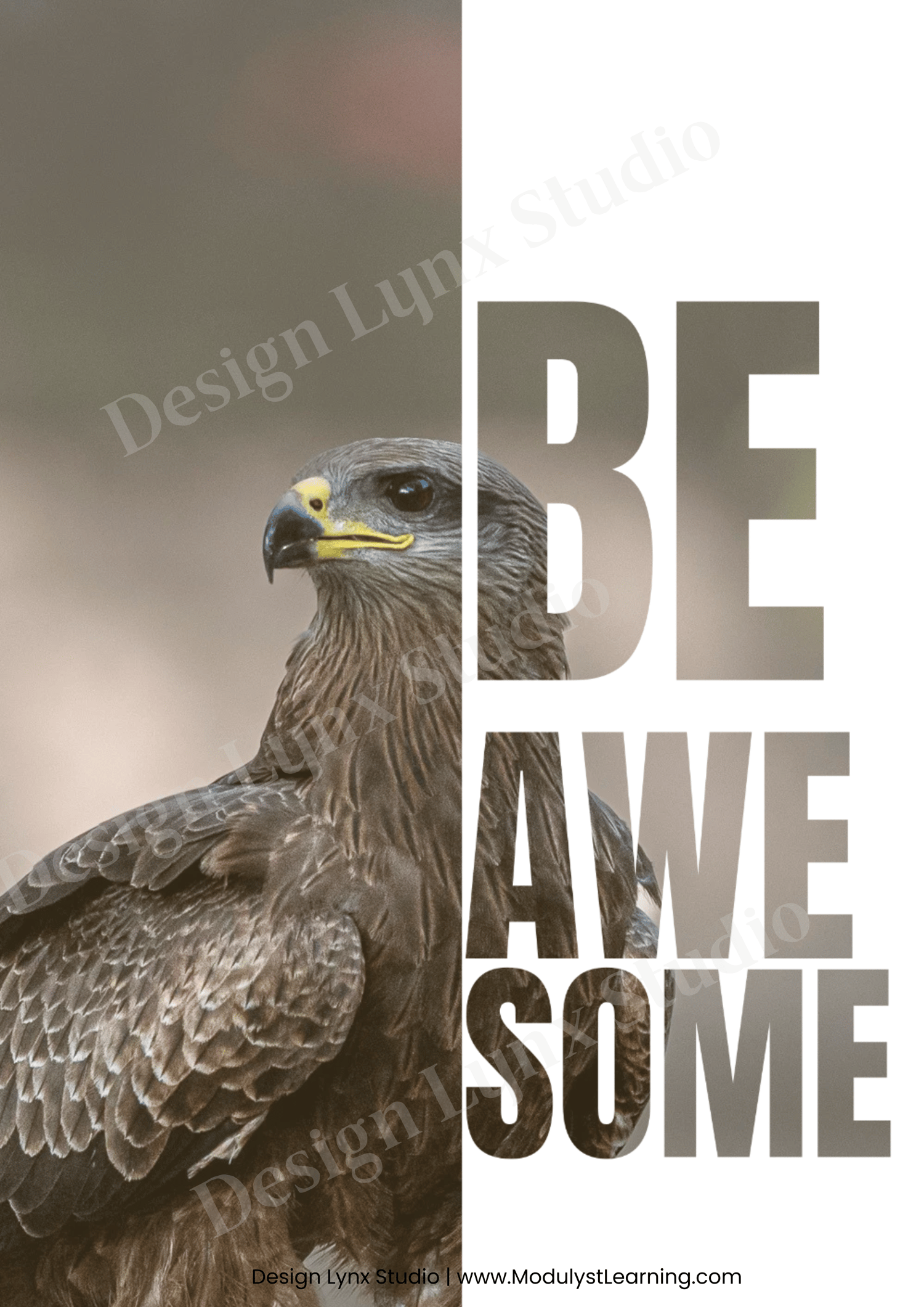 Elevate your environment with this stunning motivational poster featuring a magnificent black kite in breathtaking detail. The powerful message "BE AWESOME" combines with the fierce beauty of this majestic bird of prey to create an inspiring piece that commands attention and motivates action.